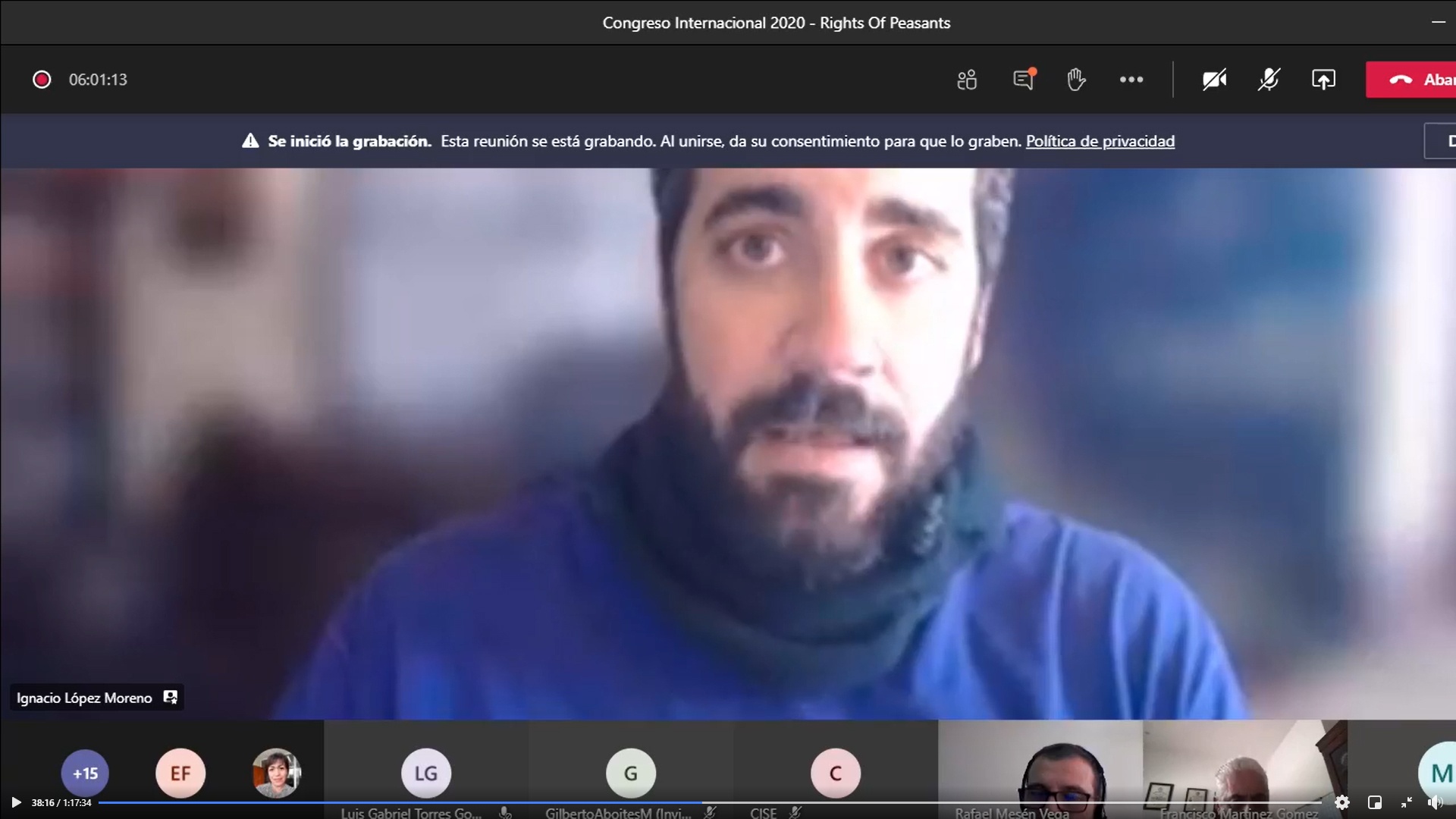 Se presentó el Simposio “La protección de las semillas tradicionales y otros saberes campesinos como derechos campesinos esenciales”, coordinado y moderado por el Dr. Luis Gutiérrez Flores de la UA de C con la participación de Natalia Pacheco y Fernando Rosales, Oficial de Programa Centro Sur (Ginebra) y ex-negociadora de la declaración de Campesinos” (“Senior Programme officer South Centre (Geneva) – former negotiator of the UNDROP”).
