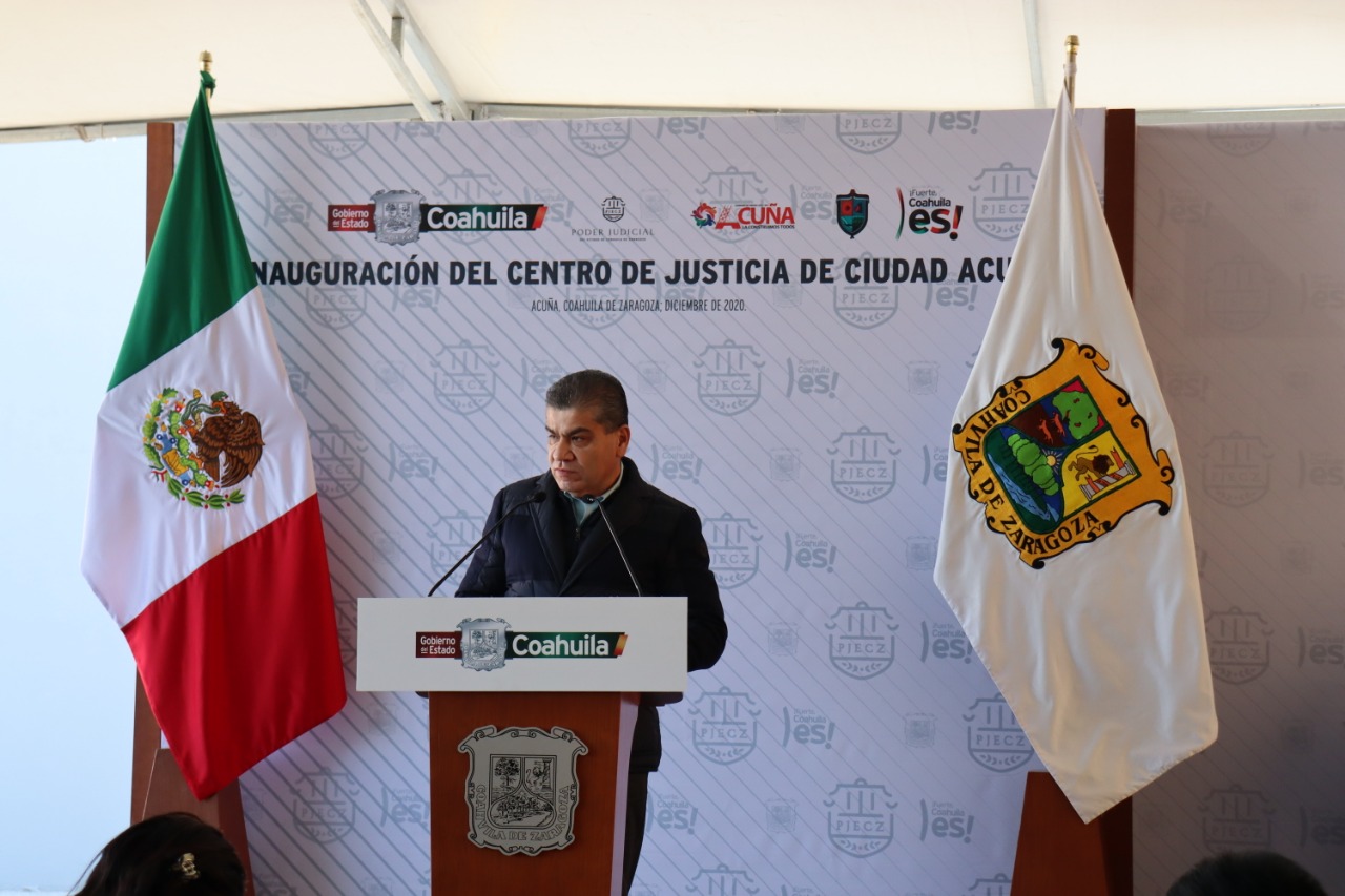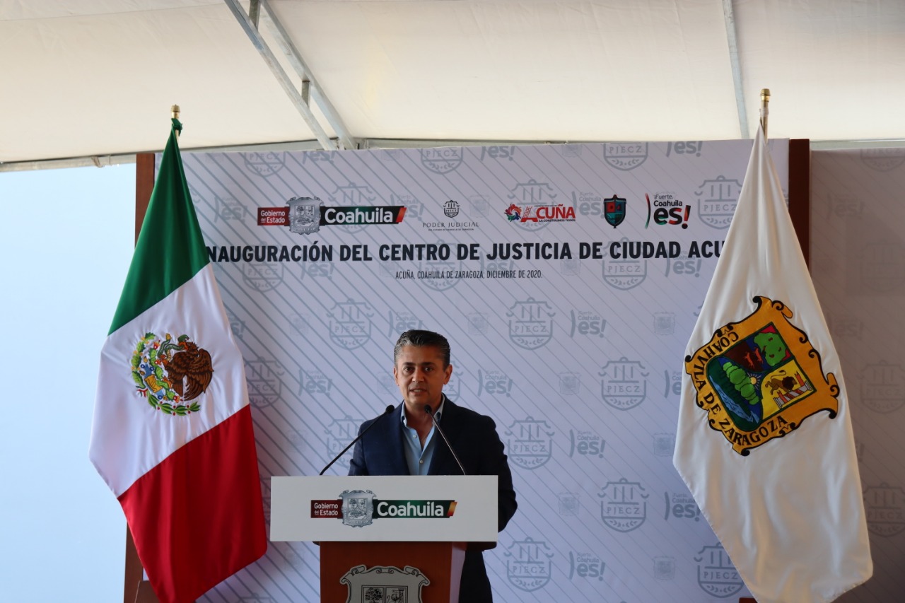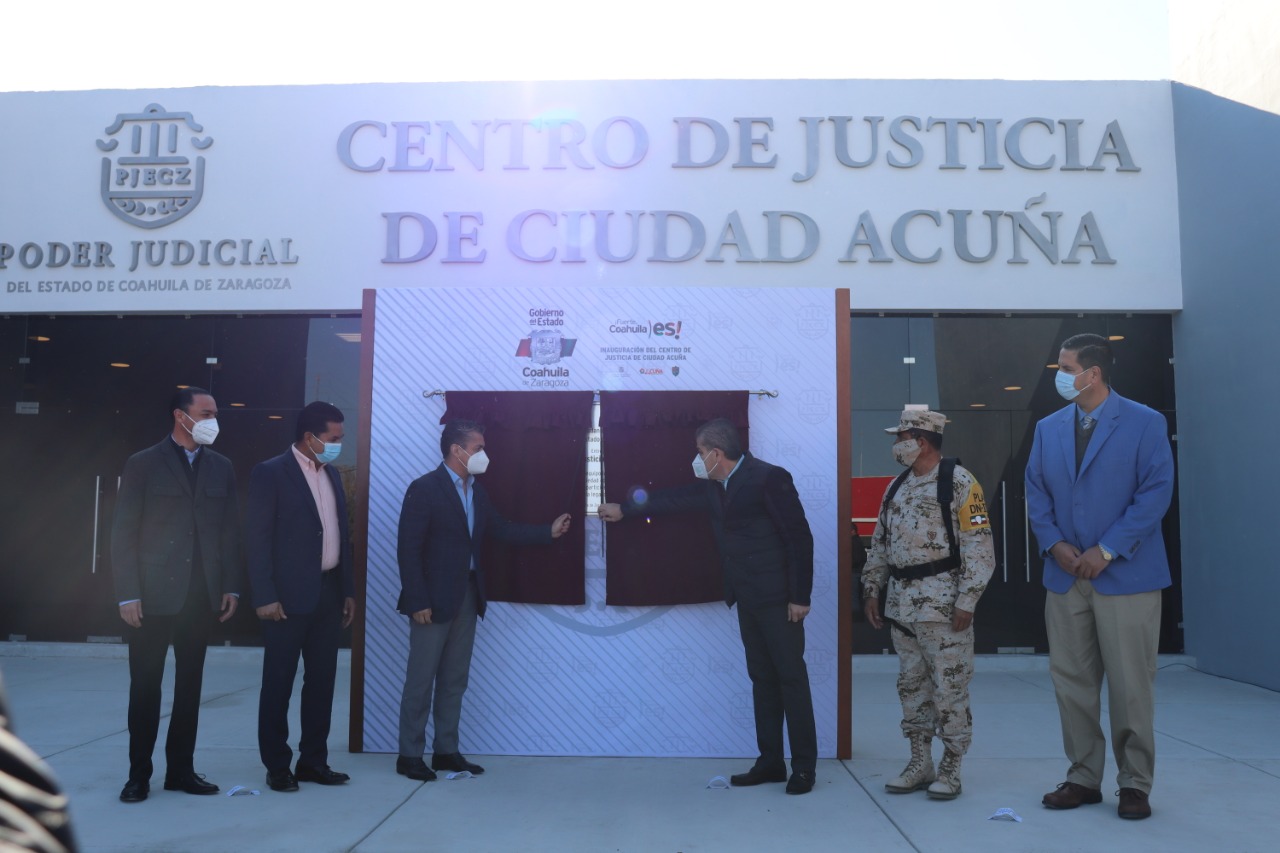 Acuña, Coahuila.- Con la firme convicción de continuar avanzando en brindar una justicia pronta, expedita y accesible a todas y todos los justiciables del estado, este martes el Gobernador del Estado de Coahuila, Miguel Ángel Riquelme Solís, inauguró junto al Magistrado Presidente Miguel Mery Ayup el Centro de Justicia de Ciudad Acuña que cuenta con las instalaciones más modernas del Poder Judicial en el Estado.