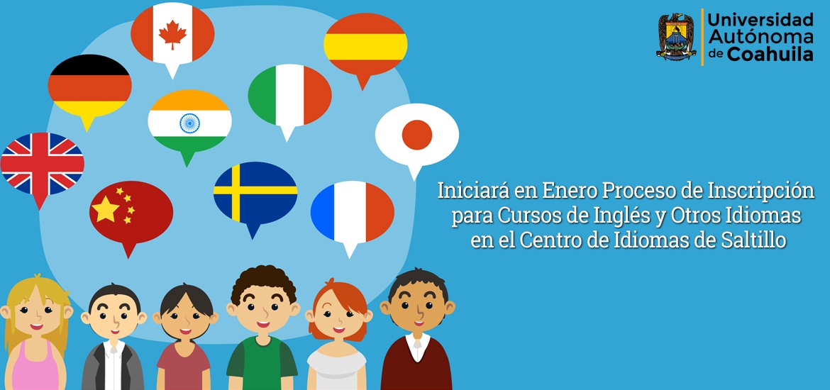 El Centro de Idiomas de Saltillo de la Universidad Autónoma de Coahuila, informa que el proceso de inscripción para los cursos de inglés, alemán, francés e italiano para el periodo enero- marzo, será del 7 al 14 de enero de 2021.
