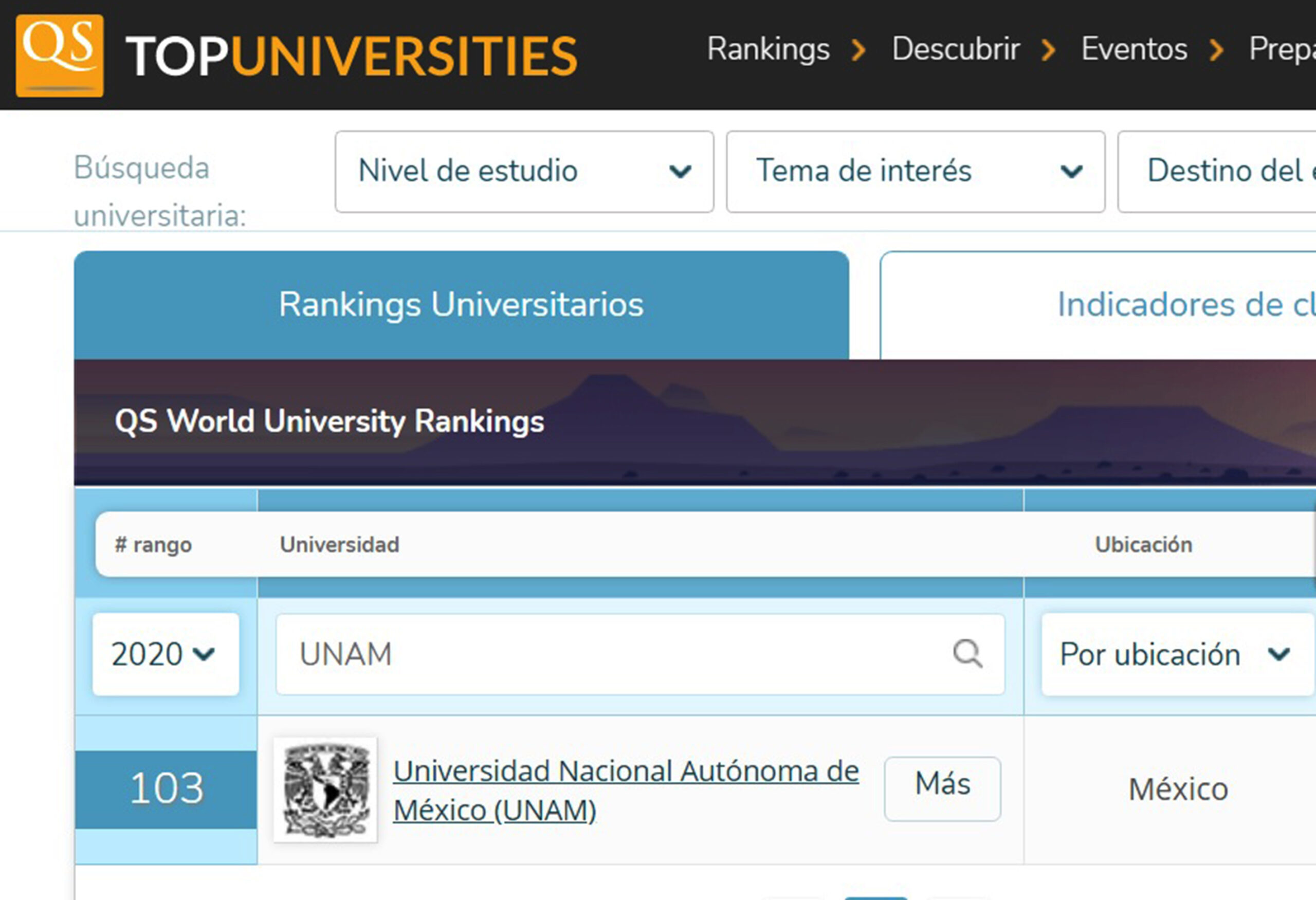 Ciudad de México.- Una vez más, la UNAM mostró su liderazgo en los ámbitos nacional e internacional al ubicarse como una de las mejores instituciones de educación superior por su prestigiado quehacer en todas las áreas del conocimiento.
