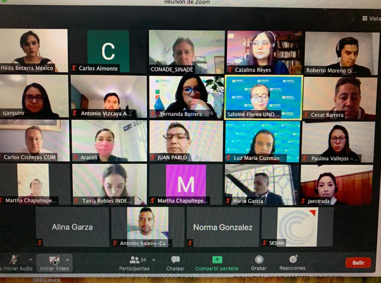 Esta primera reunión fue dirigida por Ricardo Salgado Perrilliat, Secretario Técnico de SESNA, y estuvo presente también Salomé Flores Sierra, National Programme Officer de la UNODC.