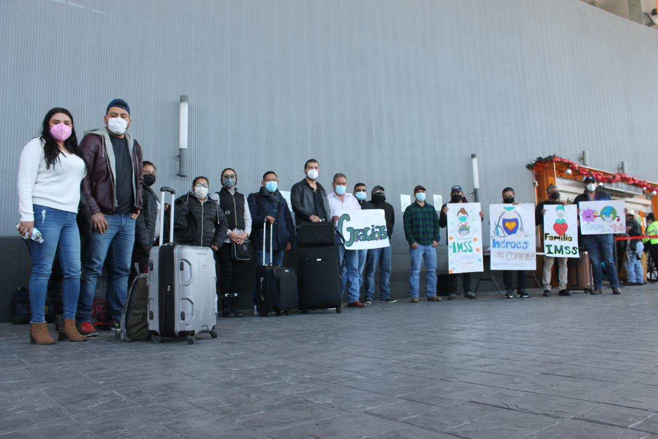 La Oficina de Representación Coahuila, del Instituto Mexicano del Seguro Social (IMSS), se solidarizó con la atención de personas hospitalizadas por COVID-19 y este miércoles 23 de diciembre, 11 elementos del personal de salud del área médica y de enfermería viajaron a la Ciudad de México para sumarse a las labores de atención a estos pacientes.