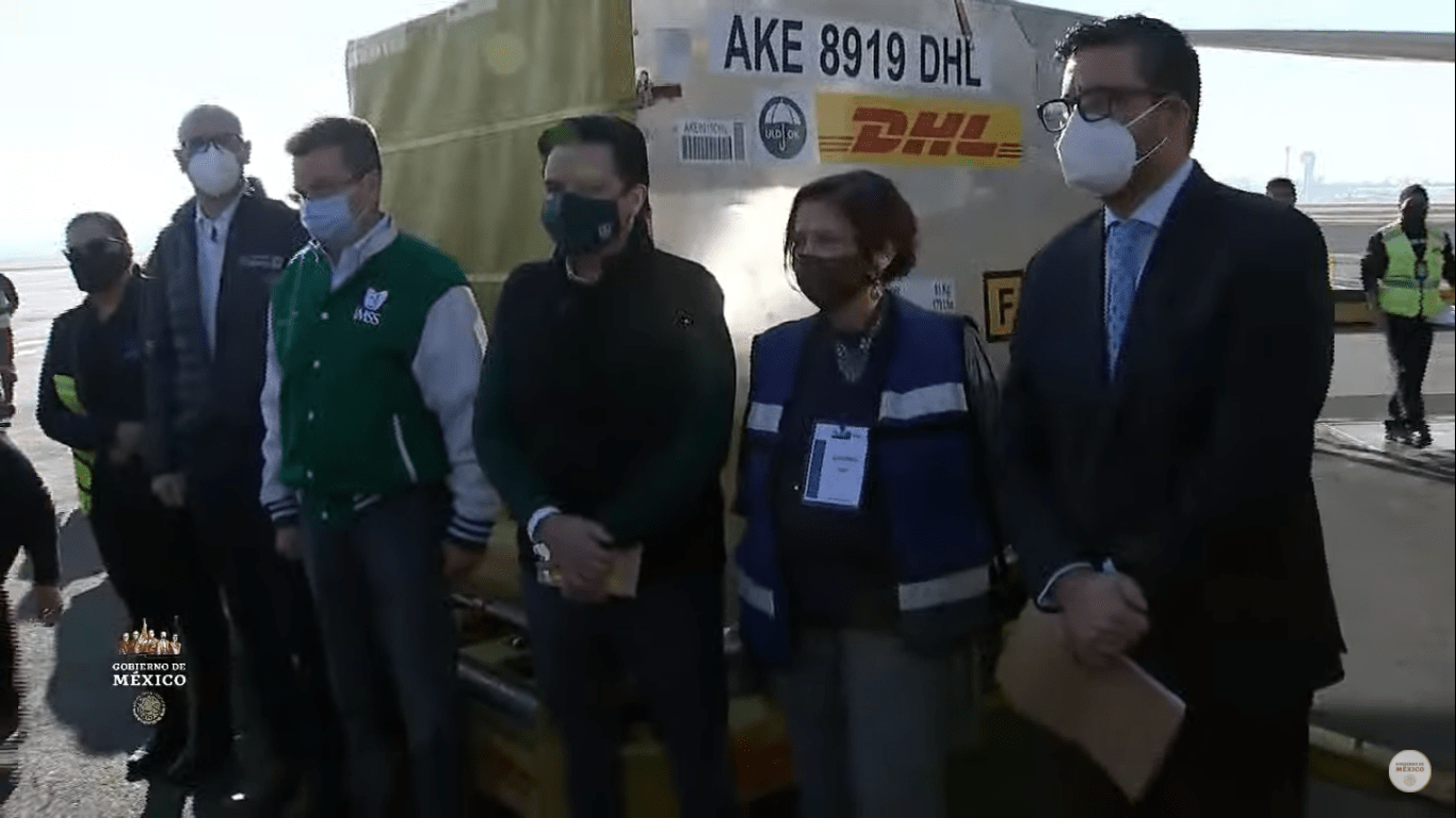 Noticieros Televisa publicó que alrededor de las 8:38 de la mañana, un avión de carga de la aerolínea Cargojet aterrizó en el Aeropuerto Internacional de la Ciudad de México. Las vacunas fueron recibidas por el director del Instituto Mexicano del Seguro Social (IMSS), Zoé Robledo.