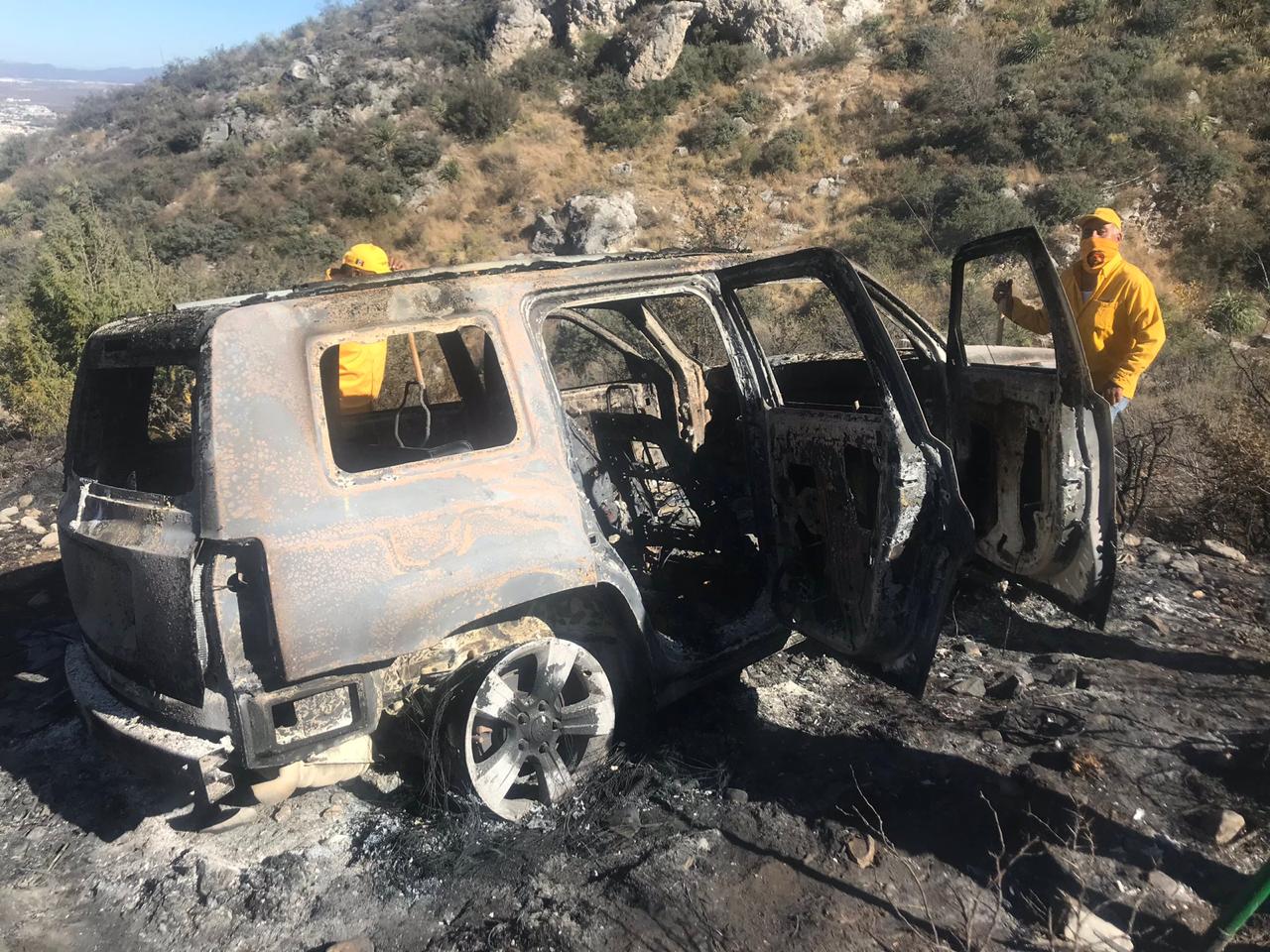 Una camioneta donde viajaban dos personas sufrió una falla mecánica que provocó que la unidad se incendiara en su totalidad, posteriormente el fuego se extendió a las faldas de la Sierra Zapalinamé.