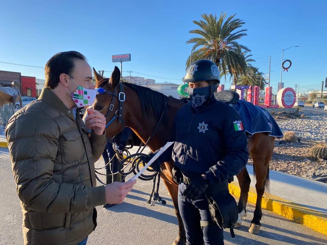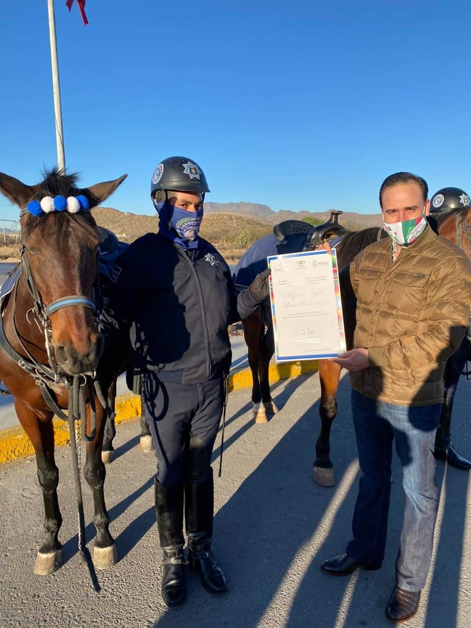 El alcalde de Saltillo, Manolo Jiménez Salinas reconoció el trabajo realizado por elementos del agrupamiento montado de la Policía Municipal que hace unos días salvaron a un niño en el lago de la Alameda.