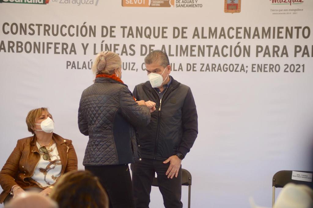 Múzquiz, Coah.- El gobernador Miguel Ángel Riquelme Solís acudió al Ejido La Cuchilla, de Múzquiz, donde dio el banderazo de inicio de un tanque superficial de concreto, de 4 mil metros cúbicos de capacidad, con líneas de alimentación para esta localidad y Palaú.
