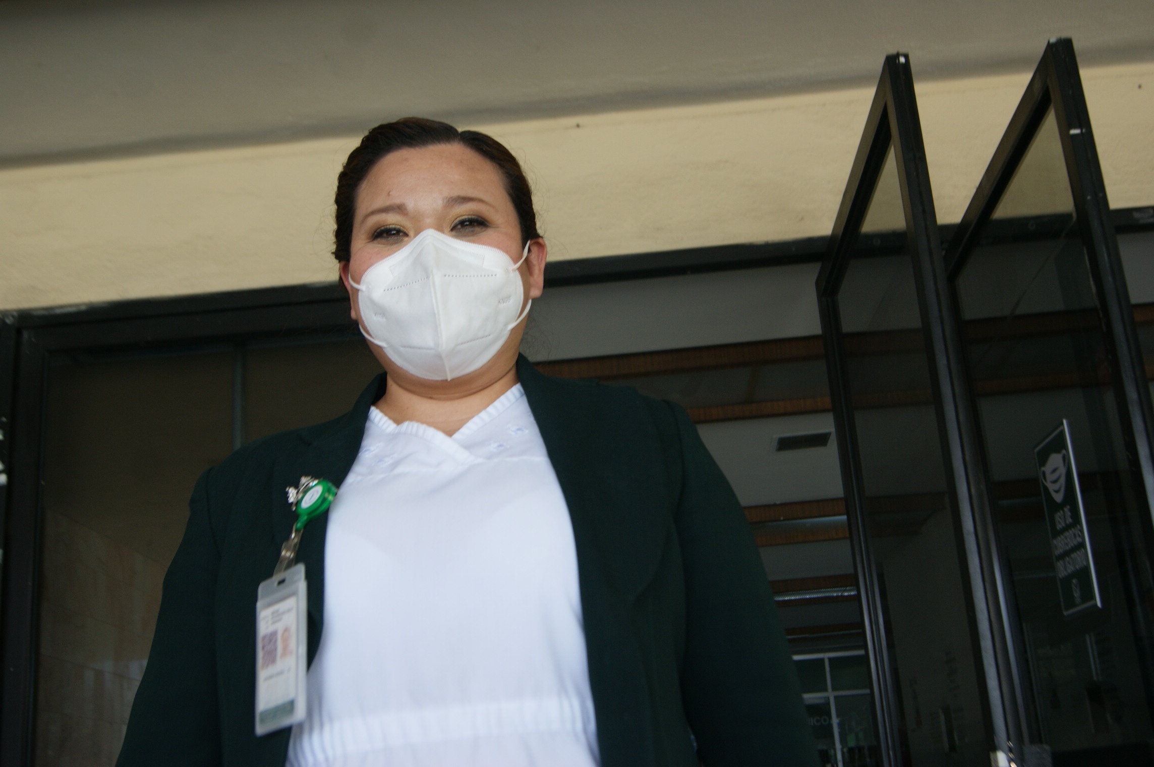 Con 8 años como enfermera, Claudia Roxana se unió –desde marzo del 2020– al equipo de combate de esta pandemia, lo que le ha representado el mayor reto de su trayectoria. Sin embargo, su entereza y compromiso hacia los ciudadanos han sido impulsores para día a día atender a las personas que permanecen en el área Covid de este Hospital, no sólo brindándoles sus servicios sino palabras de aliento y compañía.