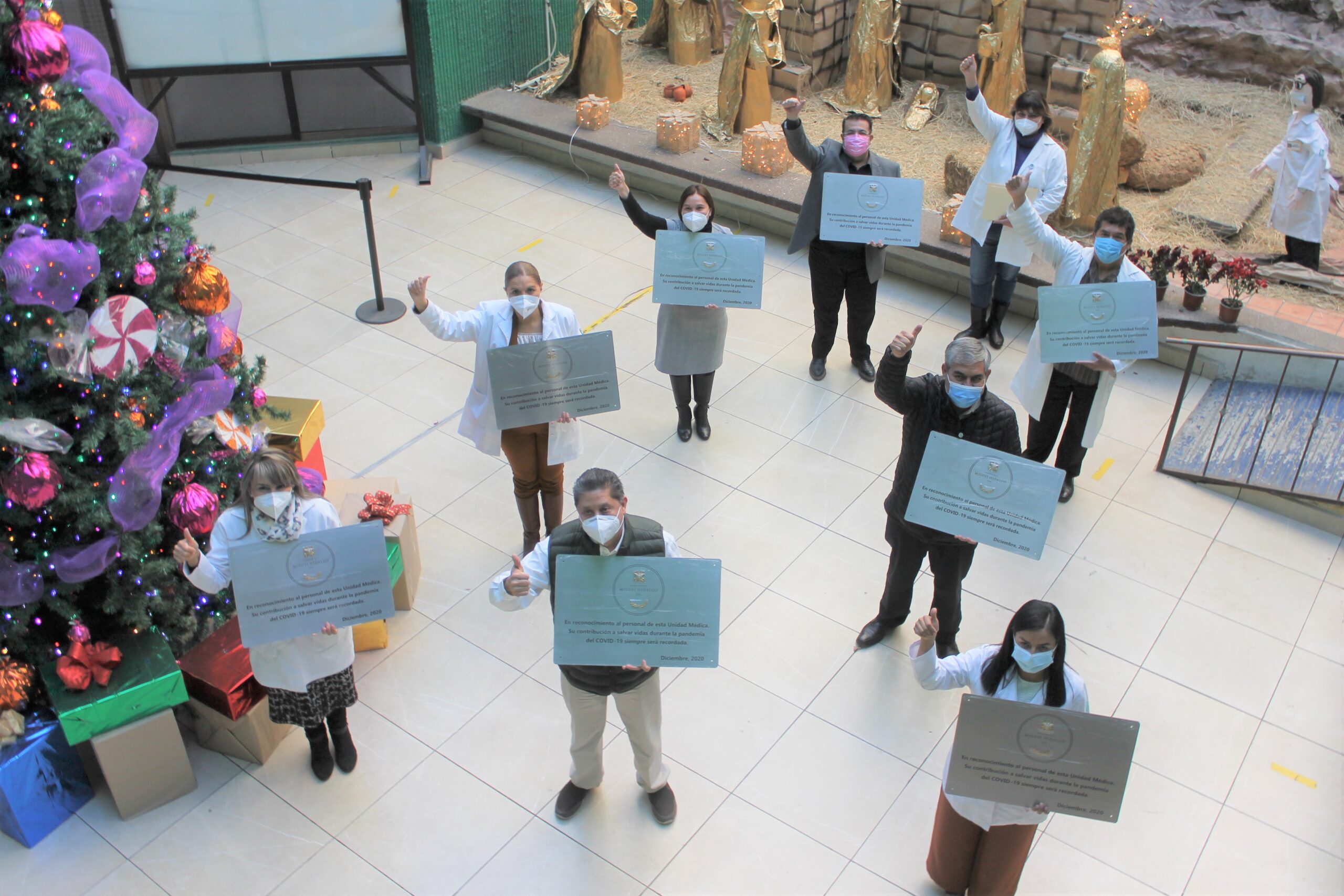 El titular de la Oficina de Representación del Instituto Mexicano del Seguro Social (IMSS) en Coahuila, doctor Leopoldo Santillán Arreygue, entregó la Condecoración Miguel Hidalgo Grado Placa a los directores de los 12 hospitales en los que se ha atendido a personas enfermas de COVID-19, desde el inicio de la emergencia sanitaria.