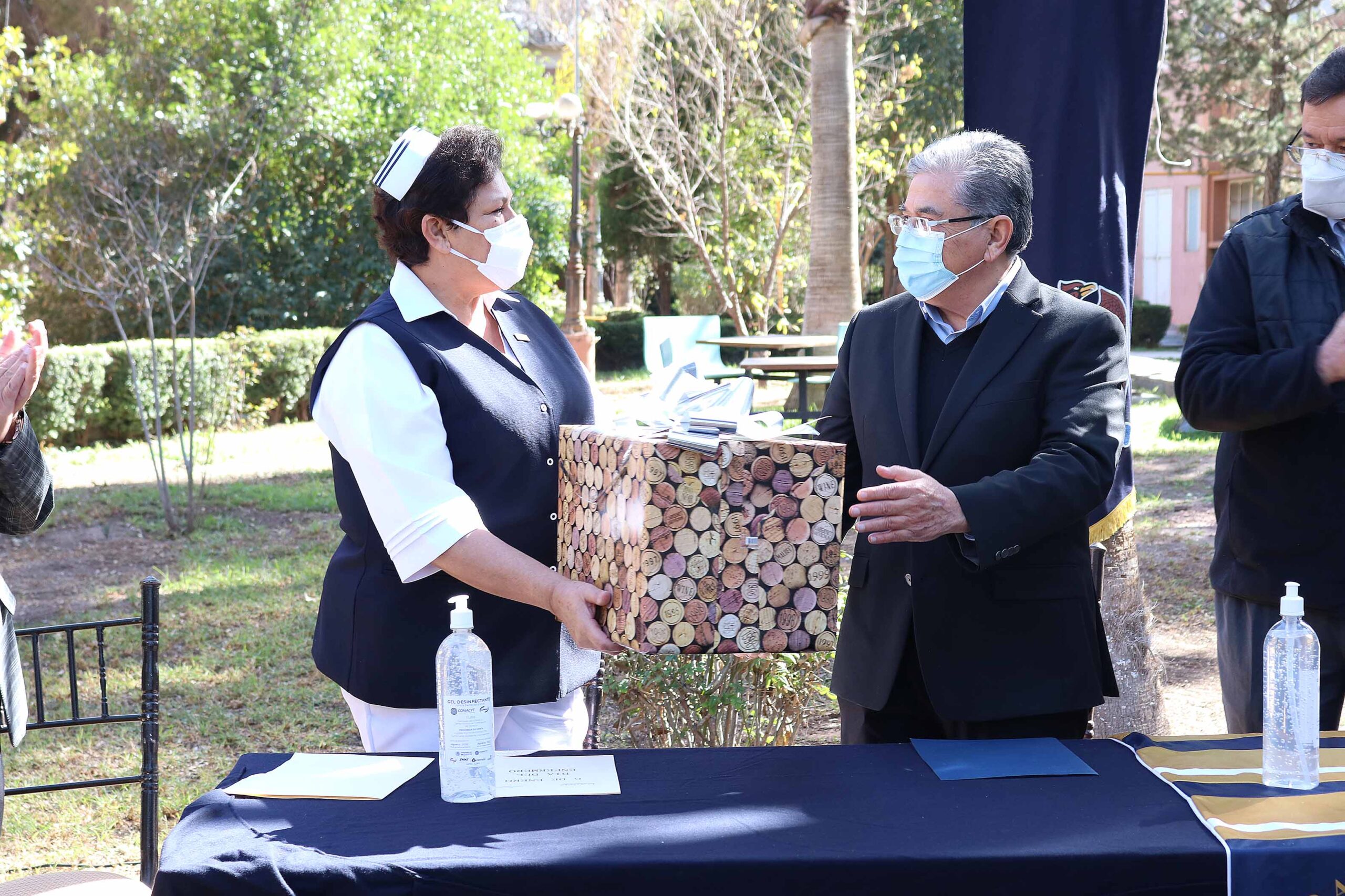 Mientras que en representación del personal de enfermería del HUS, Rebeca Durdaneth Martínez Castillo, agradeció el apoyo del Rector desde el inicio de la pandemia para la reconversión hospitalaria, así como la provisión de insumos y equipo de protección para los colaboradores del nosocomio, quienes con calidez y profesionalismo han ofrecido la atención médica a todo tipo de pacientes.