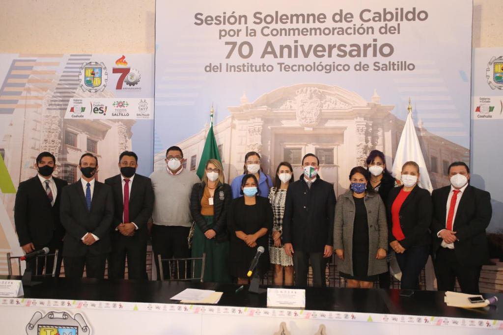 El alcalde Manolo Jiménez Salinas encabezó la Sesión Solemne de Cabildo que se llevó a cabo para conmemorar el 70 aniversario del Instituto Tecnológico de Saltillo, donde reiteró su compromiso con la educación.