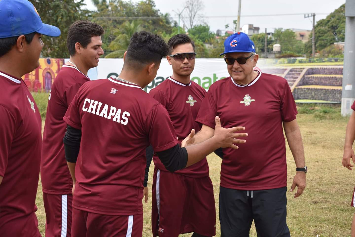 En esa visita se comprometió a apoyar el béisbol en Palenque, municipio chiapaneco donde tiene su rancho de descanso.