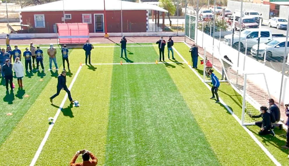 En la obra se invirtieron 2.4 millones de pesos, y cuenta con pasto sintético, alumbrado, área para graderías, cerca perimetral y sanitarios.
