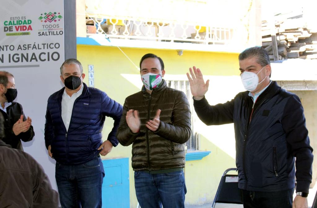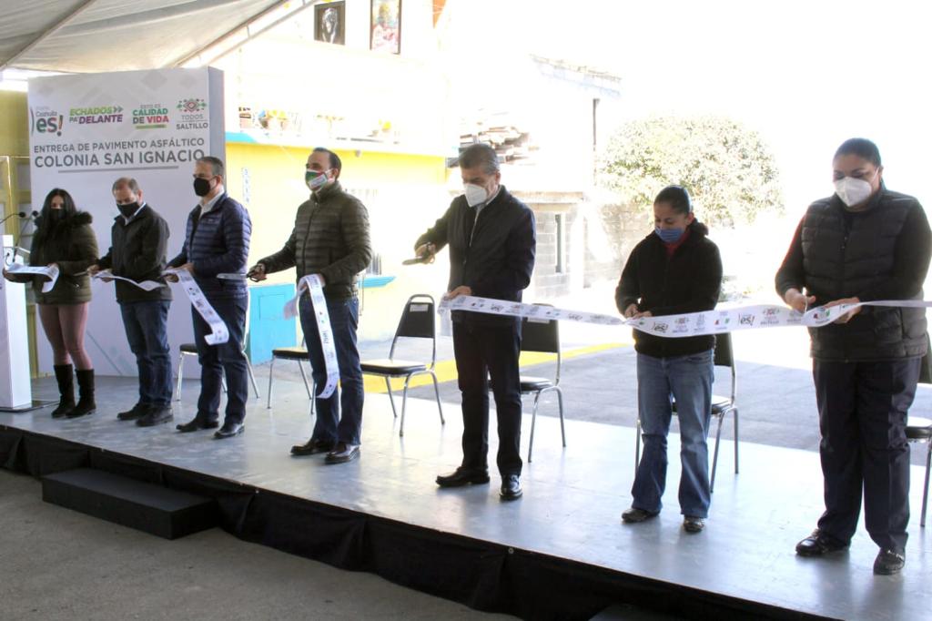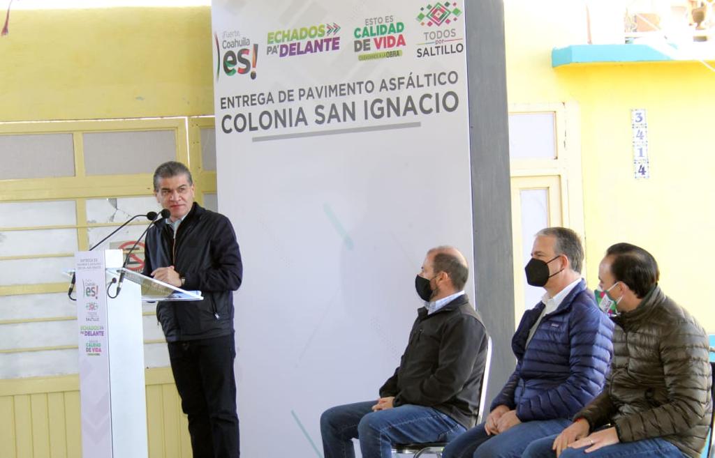 Entrega gobernador Miguel Riquelme pavimentación en la Colonia San Ignacio, en Saltillo.