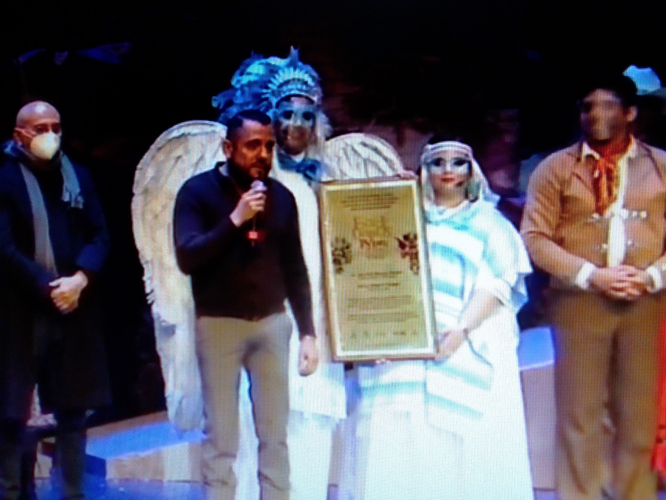 Luego de la escenificación de la obra, que esta mañana llegó a las 16 mil reproducciones, la placa fue entregada y leída por el maestro Medardo Treviño, en su calidad de vicepresidente del Instituto de Teatro de la UNESCO en México. La pastorela ha recibido el reconocimiento de la agrupación de críticos de teatro (ACPT) y de la Asociación de Cronistas de Espectáculos de Nueva York (ACE) y de la UNESCO en México.