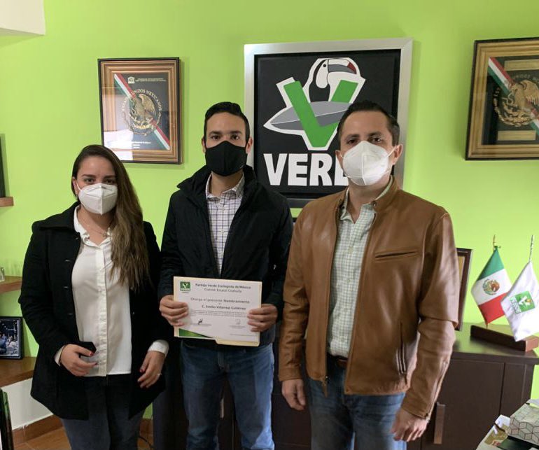 Como parte de la estructuración del Partido Verde en la Región Laguna de Coahuila, se llevó a cabo la entrega de nombramiento al Lic. Emilio Villarreal Gutiérrez como Secretario de Asuntos Jurídicos, entrega que estuvo a cargo del Lic. José Refugio Sandoval en compañía de la coordinadora del comité en Torreón la Lic. Lily Daniela Leal Romo.