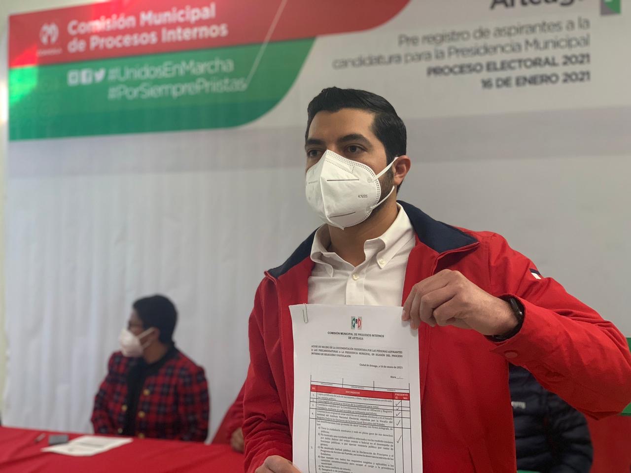 Dentro de esta jornada de registros de precandidatos al interior del Revolucionario Institucional, acudió también ante la Comisión Municipal de Procesos Internos de Arteaga el aspirante a la alcaldía de ese municipio, Ramiro Durán, a quien le fue recibida su documentación por los integrantes de ese organismo. (ÁNGEL AGUILAR/ EL HERALDO)