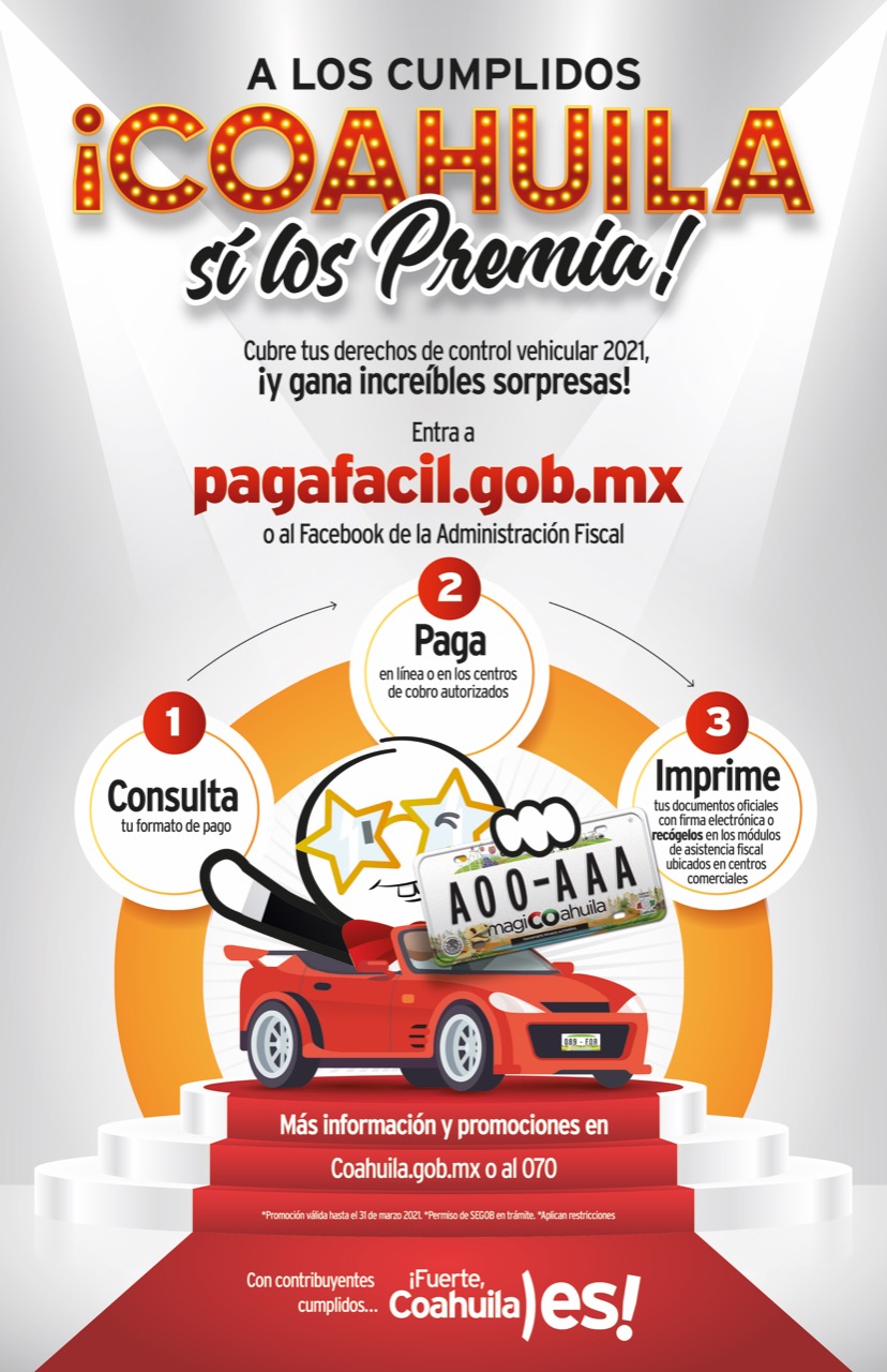 Cubre tus derechos de control vehicular 2021 y participa en las múltiples sorpresas para los coahuilenses cumplidos.