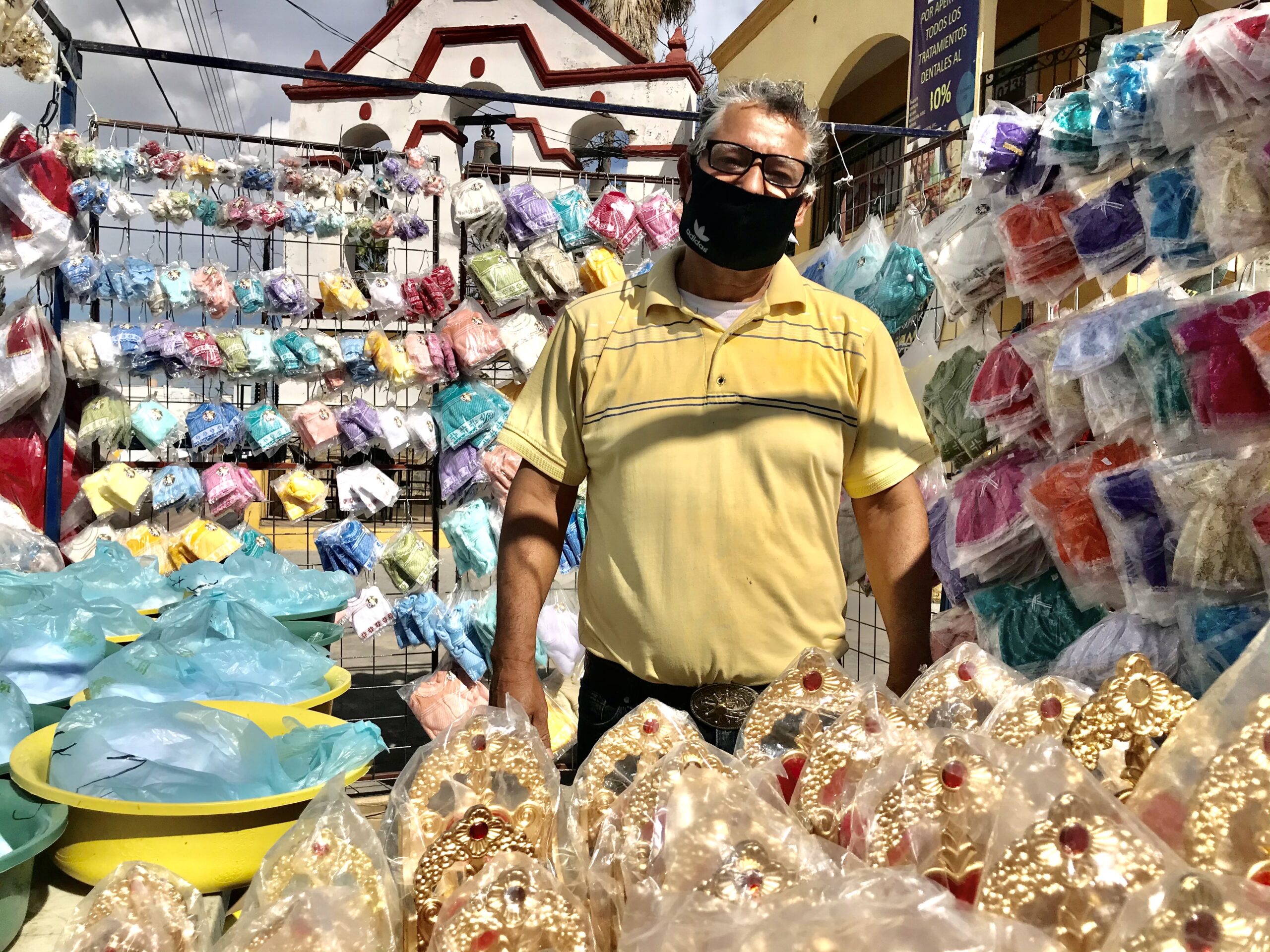 Dijo que este año se respetaron los precios al igual que en 2020 llegando a ofertar entre 40 a 120 pesos el mameluco, 40 a 130 pesos los vestidos para el Niño Dios así como ofrecer de 6.50 a 7.50 el bolo, entre otros artículos.