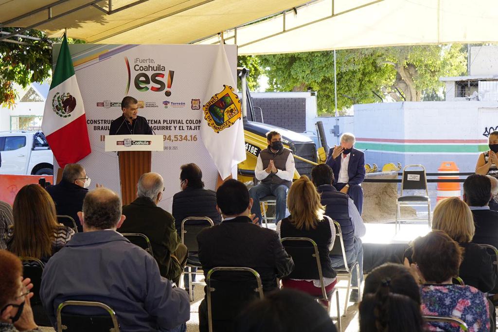 Gobernador Miguel Riquelme pone en marcha la construcción del Sistema Pluvial en Torreón.
