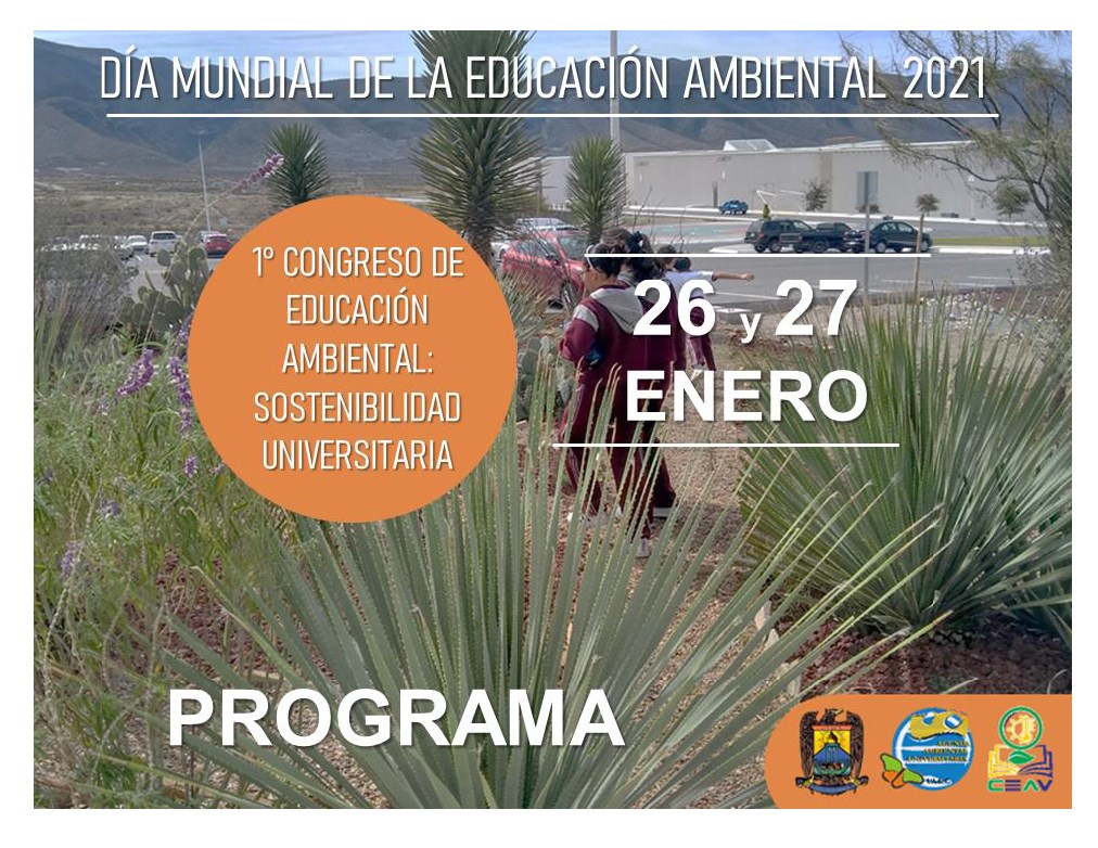 En el marco del Día Mundial de la Educación Ambiental, la Universidad Autónoma de Coahuila a través de la Coordinación de Agenda Ambiental Universitaria, invita al Primer Congreso de Educación Ambiental en materia de Sostenibilidad Universitaria los días 26 y 27 de enero, por medio del Facebook Live desde la página de Agenda Universitaria Ambiental.