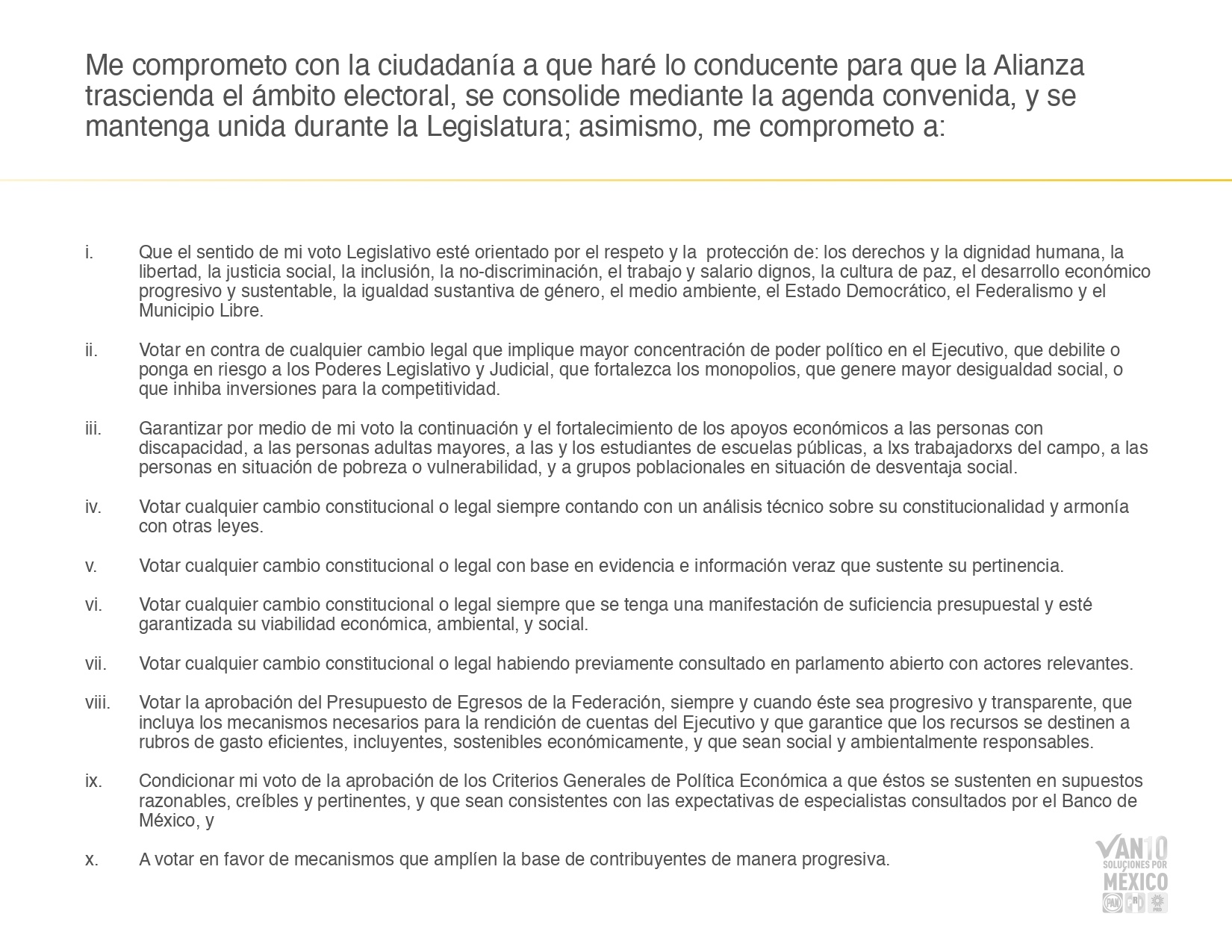 Durante el encuentro las representantes de los tres partidos presentaron diez puntos con las principales propuestas de la coalición Va por México: una economía inclusiva con oportunidades para todas y todos, justicia social, desterrar la corrupción, seguridad, salud, educación de calidad, igualdad sustantiva para las mujeres, adolescentes y niñas, protección y aprovechamiento responsable del medio ambiente y restituir la democracia. (EL HERALDO)