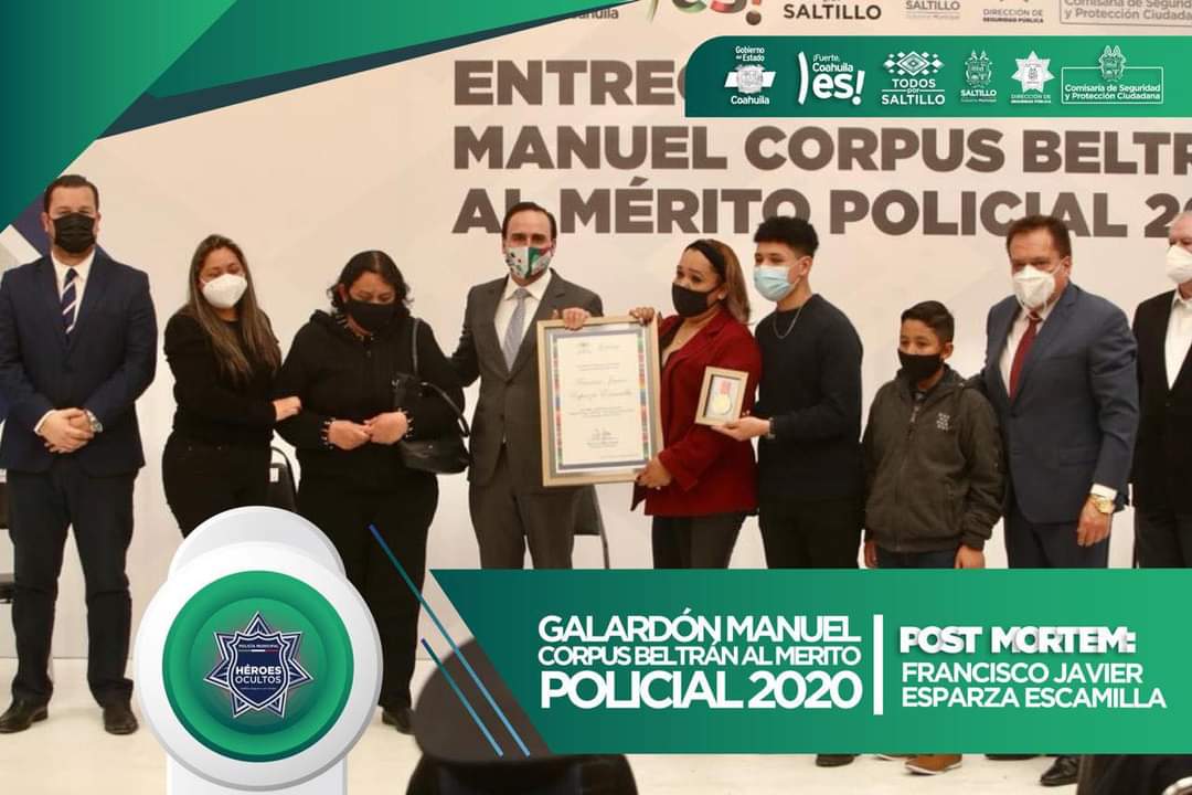En la modalidad post mortem, el galardón fue para el oficial Francisco Javier Esparza Escamilla, quien falleció en el cumplimiento de su labor en febrero del año pasado.