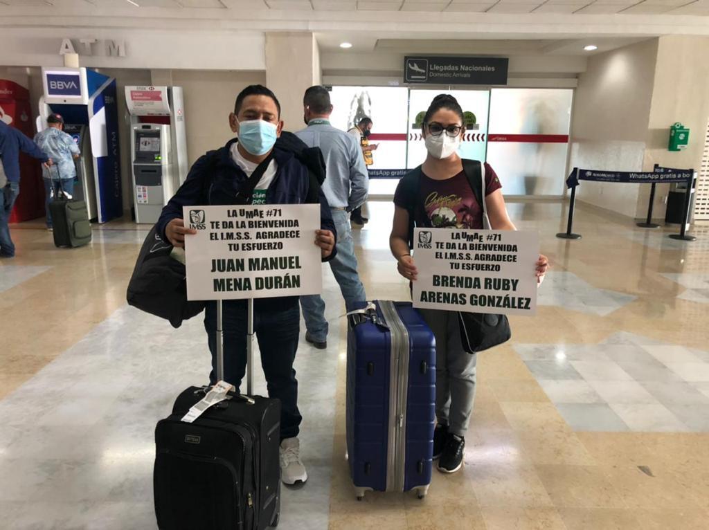 Mientras que a Torreón arribaron, Brenda Rubí Arenas y Juan Manuel Mena Durán, quienes laboran en la Unidad Médica de Alta Especialidad (UMAE) No. 71.