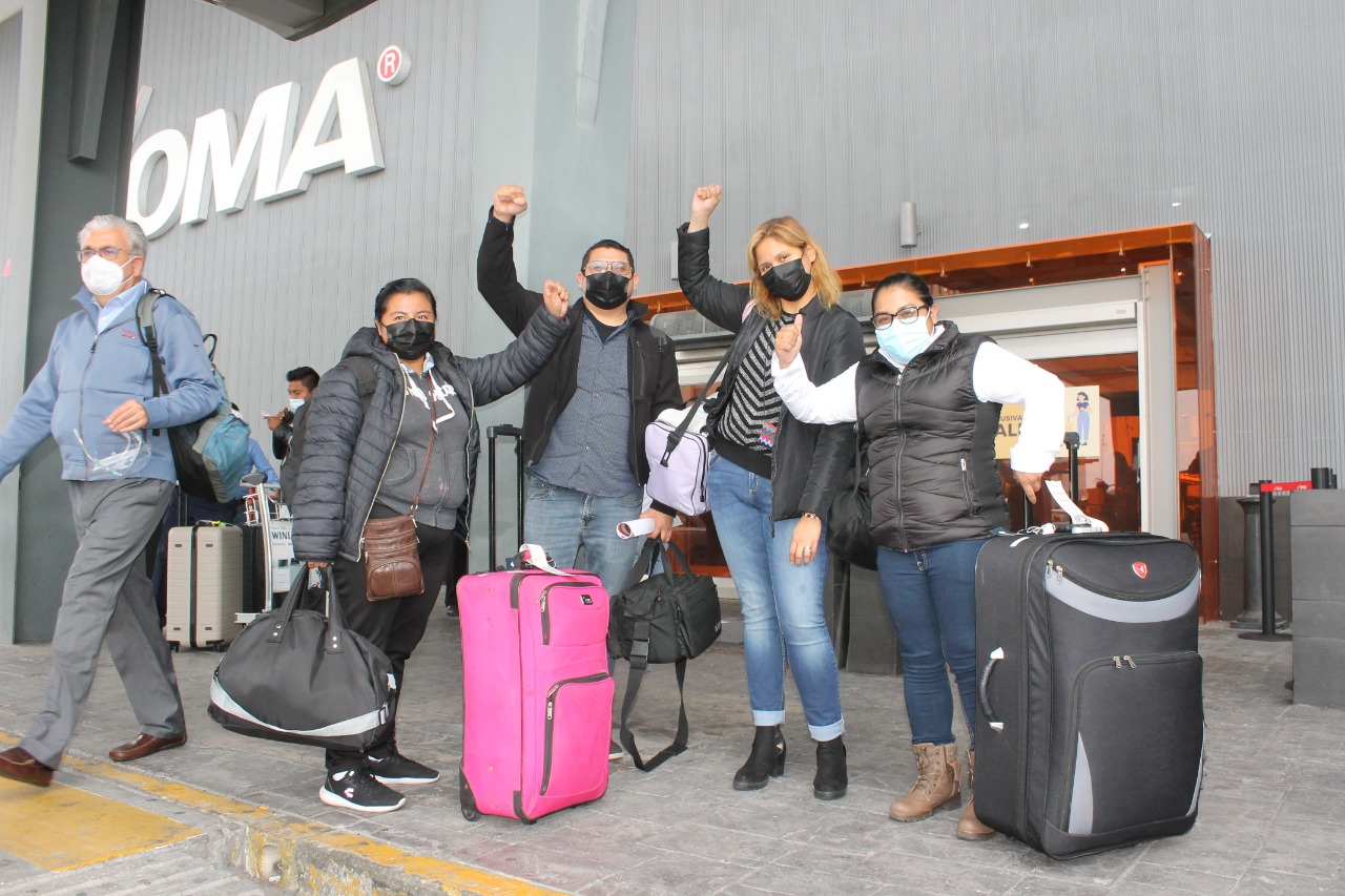 La médica general, Dylcia Verónica Vázquez Guerra, y las enfermeras auxiliares, Jazmín Guadalupe Hernández Ferrel, Carolina Isabel Martínez Rocha, adscritas al Hospital General de Zona (HGZ) No. 92 de Acuña, así como Brígido Alfonso Aguirre Prado del HGZ No. 11 de Piedras Negras, llegaron la mañana de este miércoles al Aeropuerto de Monterrey.