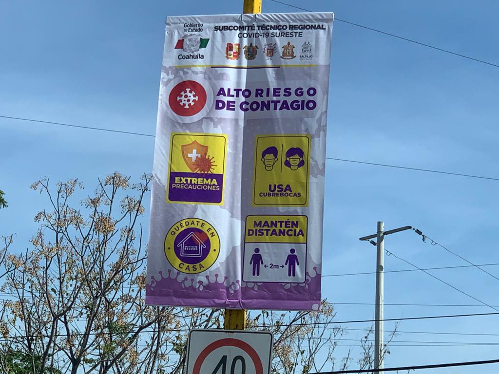 Respecto a la capital coahuilense, dichos pendones fueron colocados estratégicamente en Centro Histórico, plazas públicas y en colonias como Oceanía, Bellavista, Mirasierra, Morelos, Zaragoza y Teresitas, en las que regularmente se registran reportes de reuniones sociales con más de 15 personas, lo que incumple con las disposiciones oficiales para mantener a la baja el índice de casos positivos.