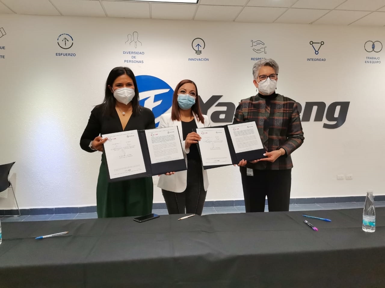 En este evento híbrido estuvieron presentes por parte de Yanfeng México alrededor de 150 personas en el territorio nacional. Para la formalización del instrumento, firmaron conjuntamente la Directora de Operaciones a nivel nacional, Lourdes Adriana Cobos Cabrera, así como Laura Lorena Ceballos Campaña, directora de Recursos Humanos, quienes refrendaron el compromiso de Yanfeng México como empresa socialmente responsable e inclusiva, que busca el bienestar integral de sus trabajadoras y trabajadores.