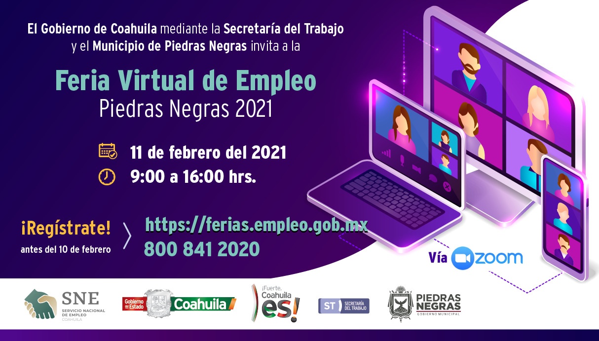 El Gobierno de Coahuila, en coordinación con el Municipio de Piedras Negras, realizará este 11 de febrero la primera Feria Virtual del Empleo en la Región Norte del estado.