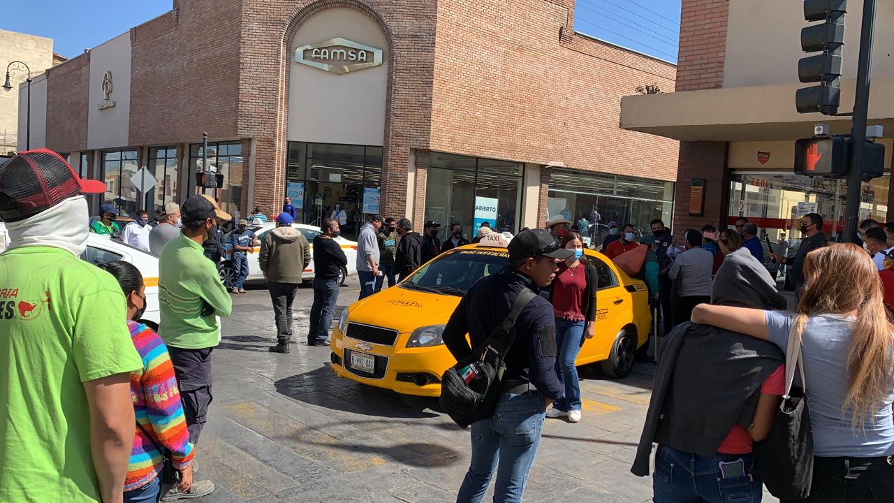 Finalmente, los choferes del transporte de alquiler llegaron a la Presidencia Municipal, donde con algunas unidades cerraron el bulevar Francisco Coss desde Candela hasta Purcell.