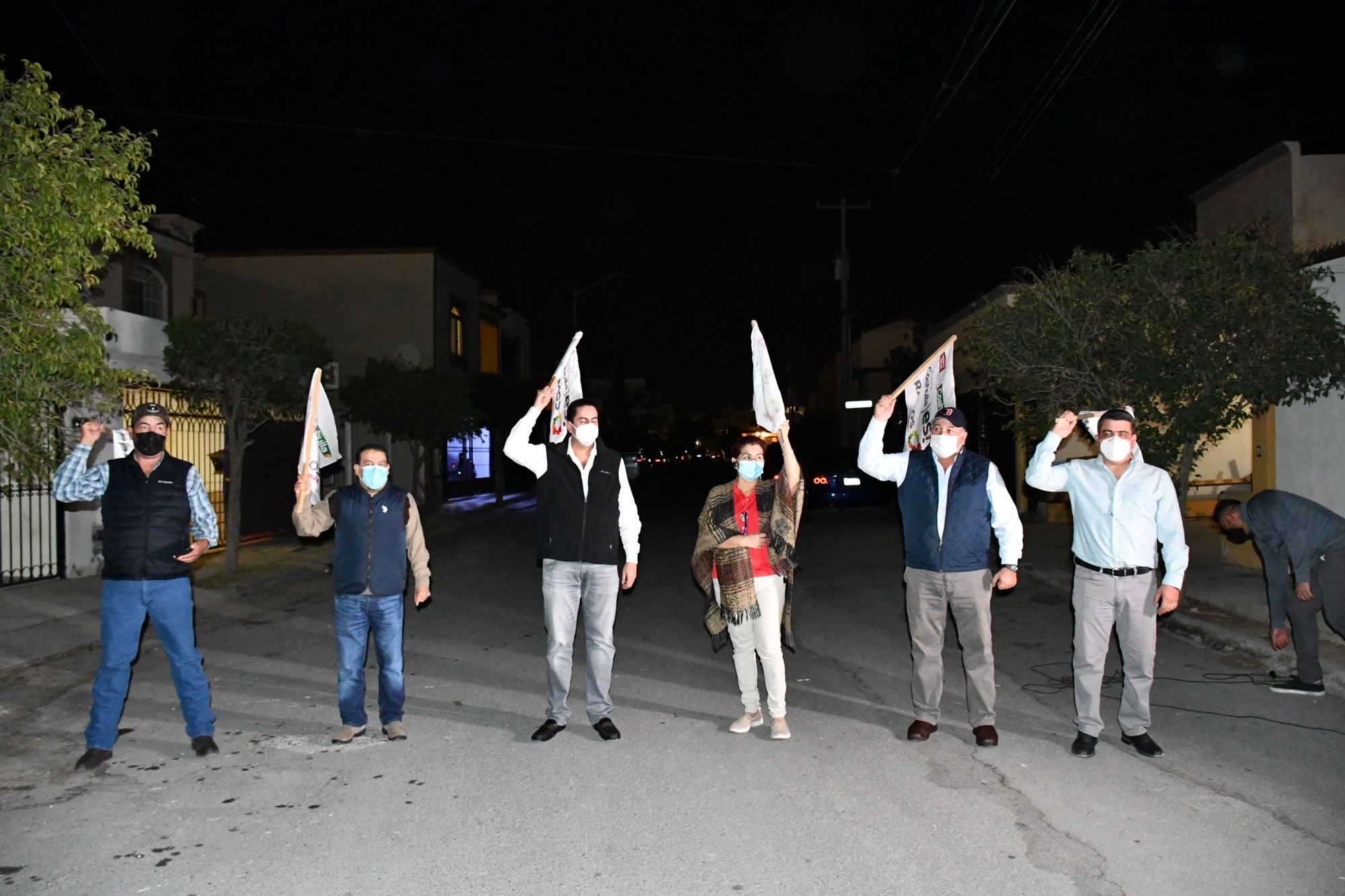 Este martes el alcalde de Ramos Arizpe, Chema Morales Padilla encendió la nueva iluminación en la colonia Lomas Del Valle.