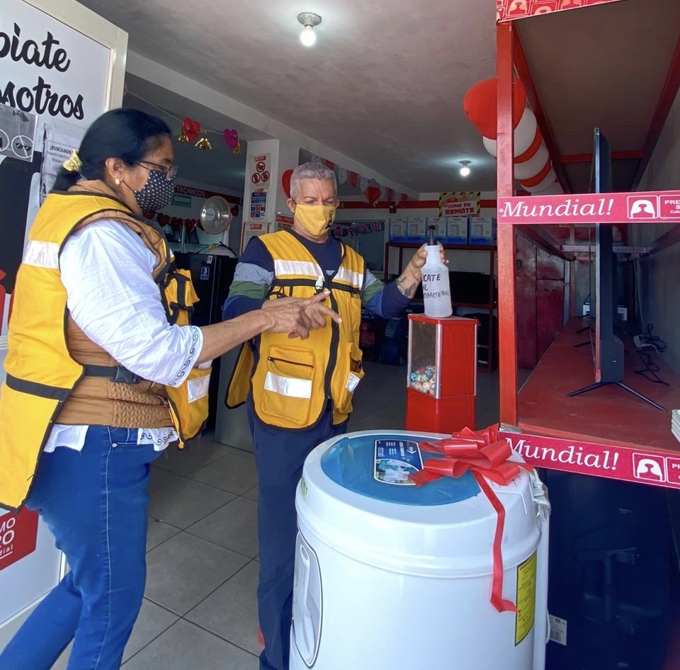 Los vigilantes tienen la responsabilidad de verificar que cada establecimiento cumpla con los protocolos sanitarios establecidos para los comercios y de esta manera seguir operando conforme a la nueva normalidad, se destaca que diariamente visitan de 60 a 90 comercios. (EDUARDO SERNA)