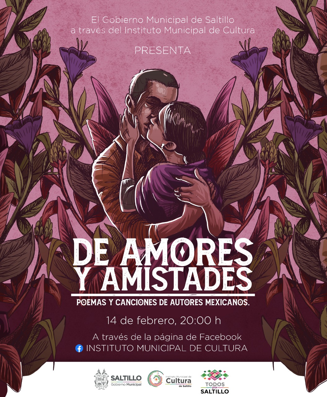 En el marco del día del amor y la amistad, el Instituto de Cultura de Saltillo (IMC) ha programado una serie de actividades en las que destacan creadores y ejecutantes del estado de Coahuila, con la finalidad de promover la convivencia con sana distancia, a través de la página de Facebook https://www.facebook.com/IMCSaltillo