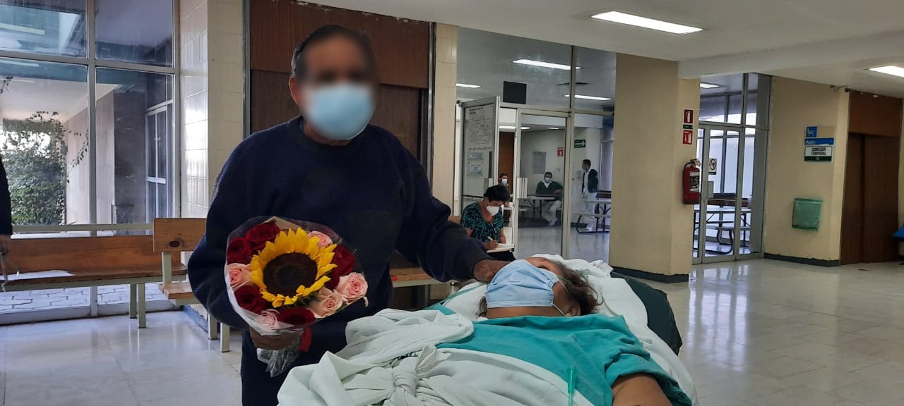 “Mi niña hermosa”, expresó entre lágrimas su esposo Jesús, quien le llevó un arreglo floral de girasoles y rosas para demostrarle cuánto esperaba reunirse de nuevo con ella.