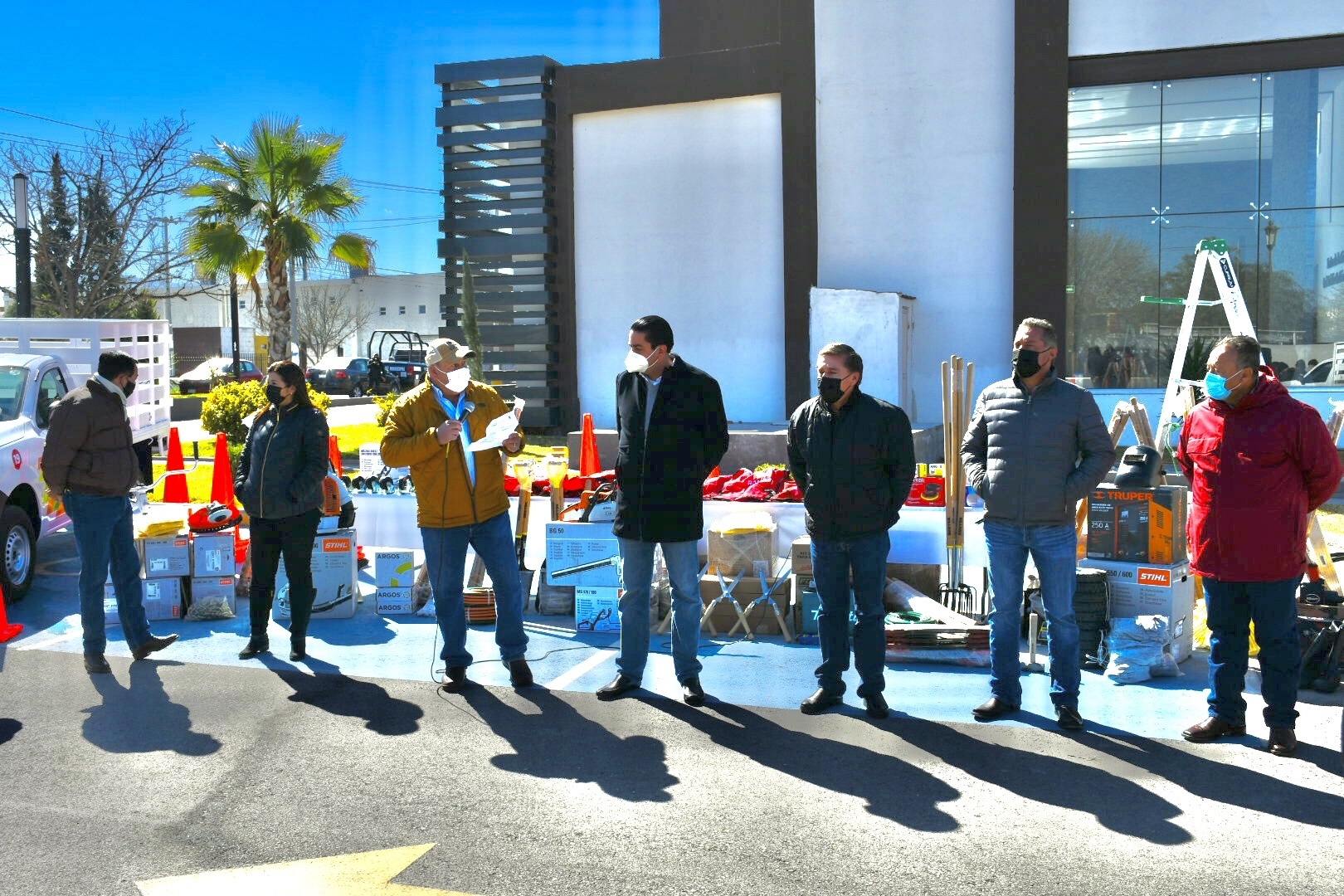 El alcalde de Ramos Arizpe, Chema Modales Padilla, entregó este lunes diverso material para la secretaria de Servicios Municipales, así como para la Compañía de Aguas de Ramos Arizpe (COMPARA), con el objetivo de reforzar con diversas herramientas las tareas que ambas áreas llevan a cabo todos los días en servicio a los ramosarizpenses.