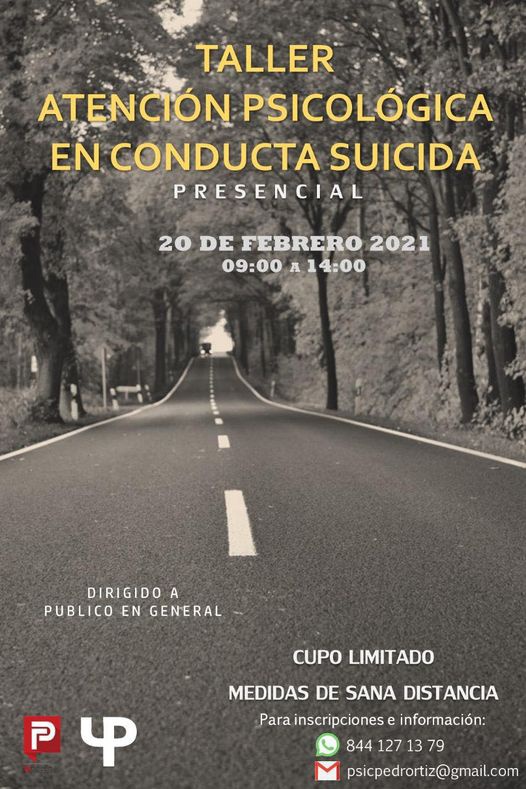 La Facultad de Psicología de la Universidad Autónoma de Coahuila, invita a inscribirse al Taller de Atención Psicológica en Conducta Suicida, que se llevará a cabo el sábado 20 de febrero de 2021.