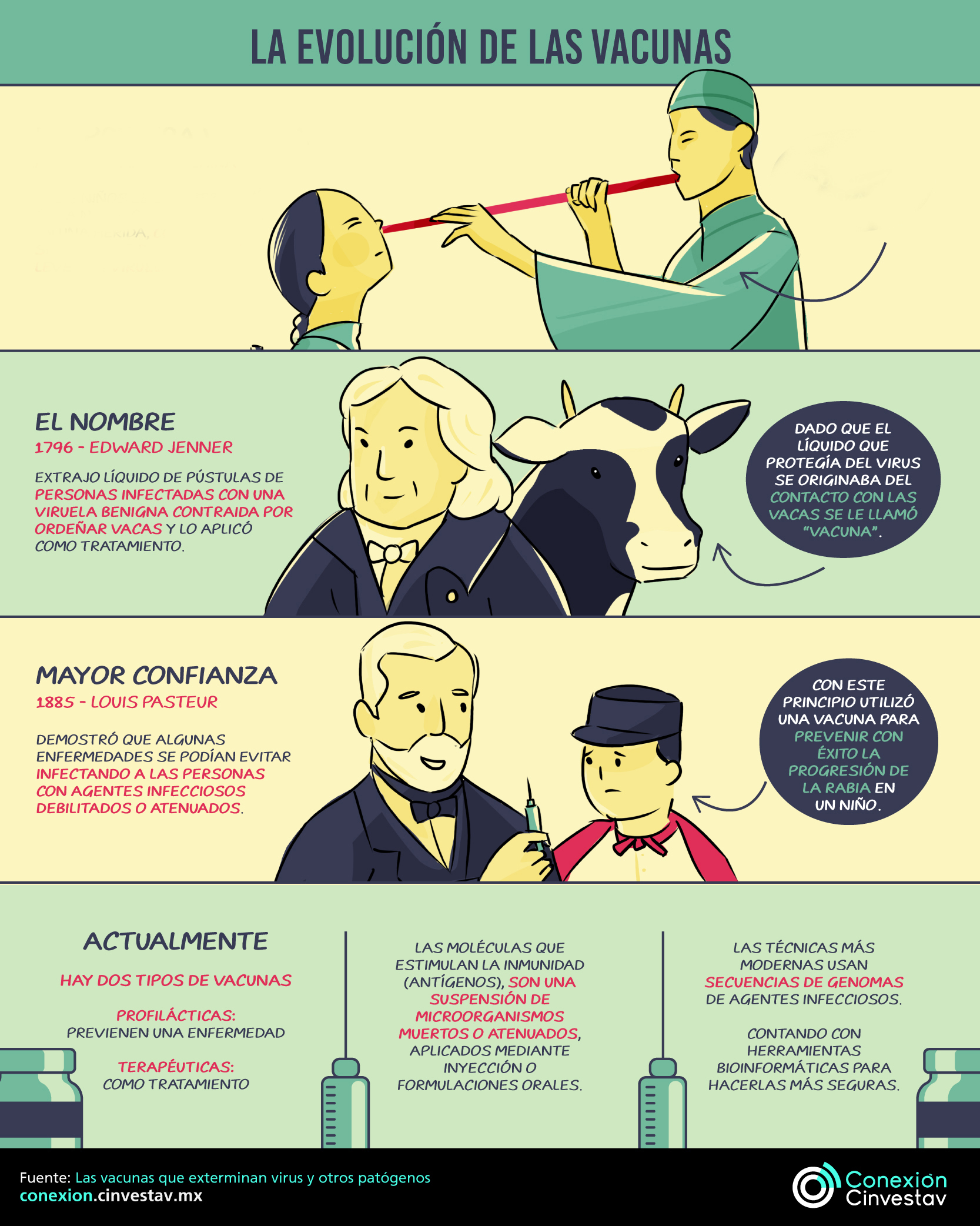 Un hecho que fortaleció la confianza de la sociedad en las vacunas ocurrió en 1885 cuando Louis Pasteur, químico y bacteriólogo francés, demostró cómo algunas enfermedades se podían evitar infectando a los seres humanos con gérmenes debilitados o atenuados de las mismas.