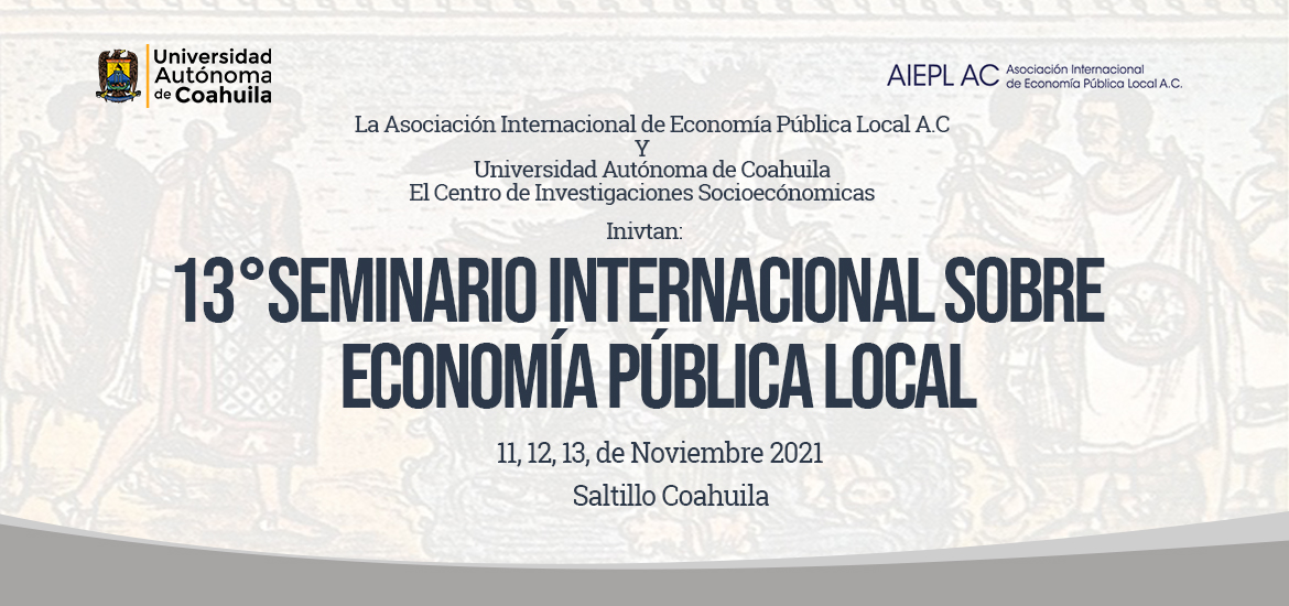 Con motivo del 25° aniversario de la Maestría en Economía Regional, el Centro de Investigaciones Socioeconómicas de la Universidad Autónoma de Coahuila, será sede del 13° Seminario Internacional Sobre Economía Pública Local (SEMEPUL), que se llevará a cabo de forma remota y presencial, los días 11, 12 y 13 de noviembre de este año.