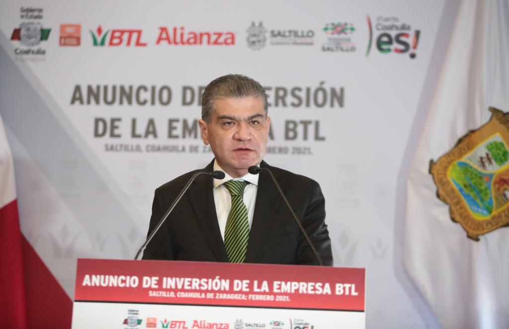 Con la generación de 550 nuevos empleos formales y una inversión de 48 millones de dólares, el gobernador Miguel Ángel Riquelme Solís anunció la llegada de la empresa BTL al Valle de Derramadero, en el Municipio de Saltillo, la cual es de origen chino y especializada en sistemas de seguridad del ramo automotriz.