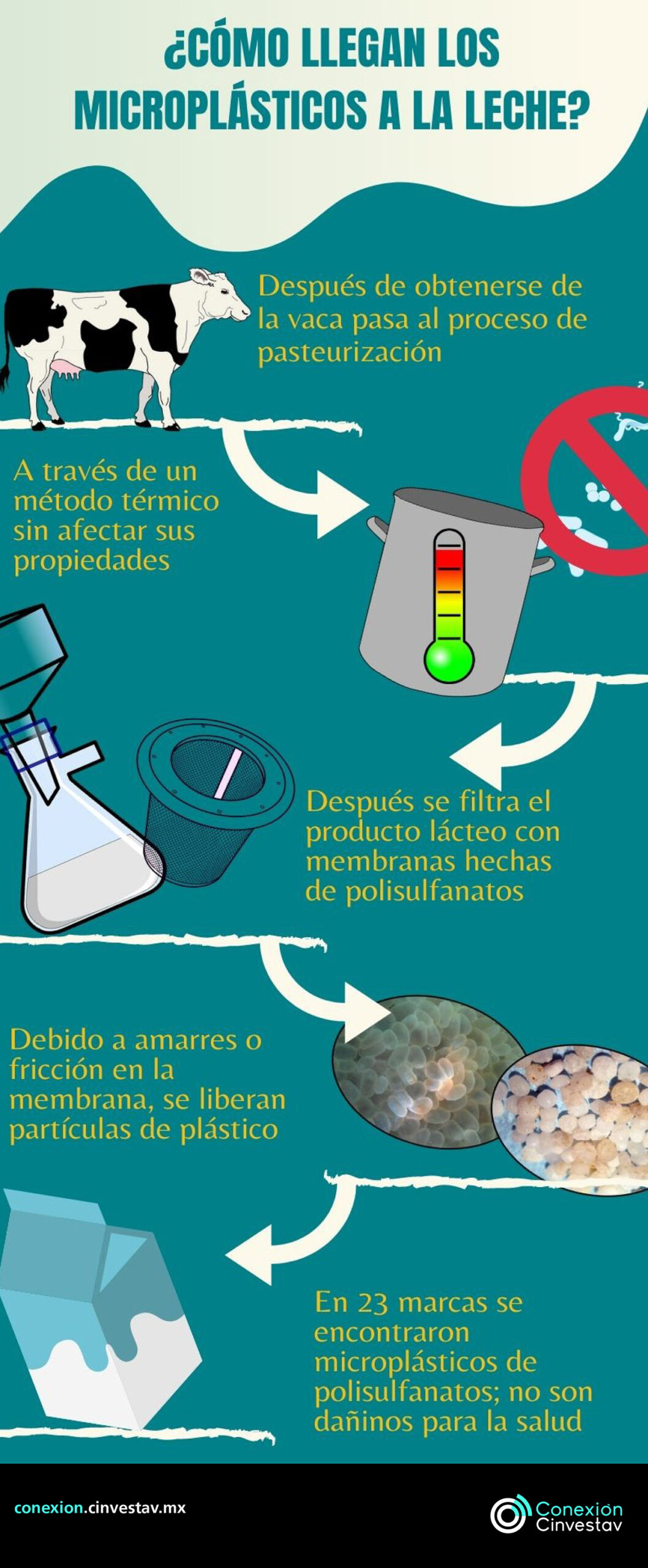 Uno de los más recientes hallazgos lo realizaron en 23 marcas de leche vendidas en México, donde en todos los casos encontraron una pequeña cantidad de microplásticos, en específico de la familia de los polisulfanatos, los que tiene aplicación en la industria alimenticia como elementos en la membrana de filtros.