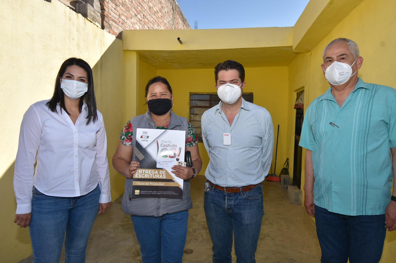 Junto al Director General de la Comisión Estatal para la Regulación de la Tenencia de la Tierra Urbana y Rústica de Coahuila, Miguel Ángel Leal Reyes, y del coordinador regional de la misma CERTTURC, Manuel Javier Boone de Nova, resaltaron la importancia que representa el contar con un título de propiedad.