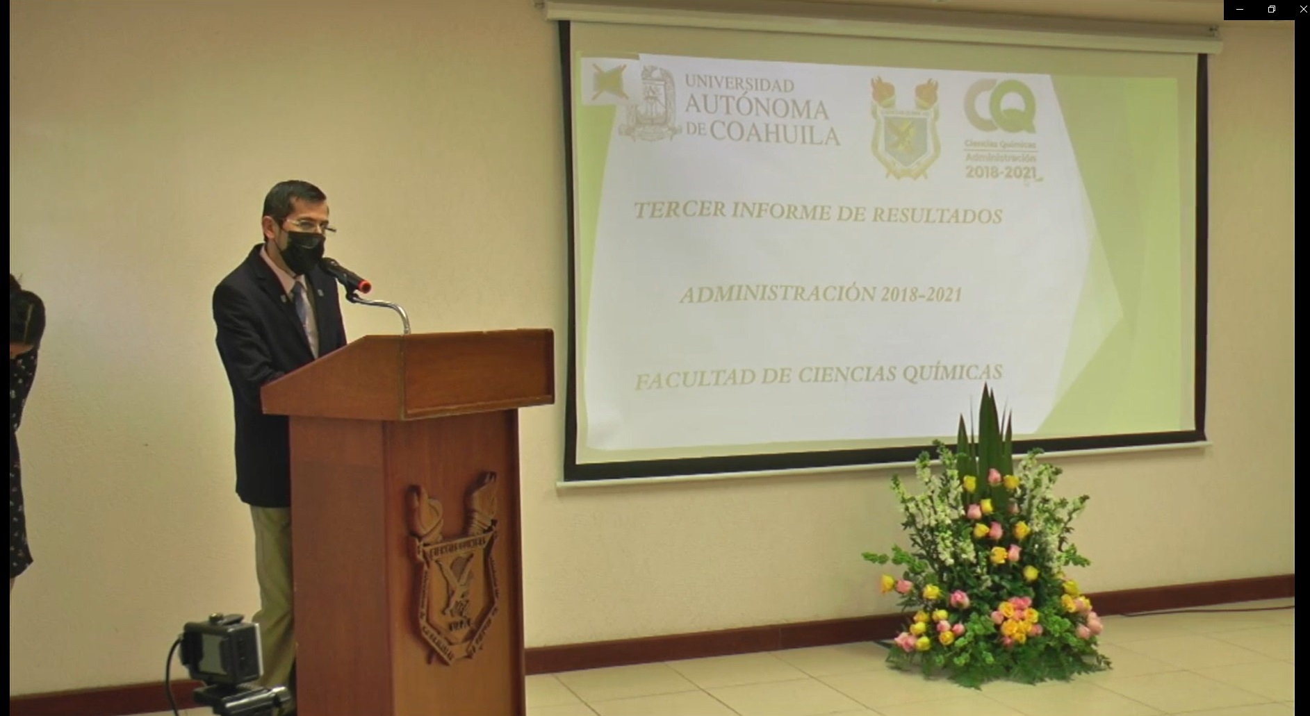 El director de la Facultad de Ciencias Químicas, de la Universidad Autónoma de Coahuila, Gerardo Sosa Santillán, presentó este jueves ante el consejo directivo y comunidad universitaria del plantel, su informe de actividades correspondiente al periodo 2018-2021.