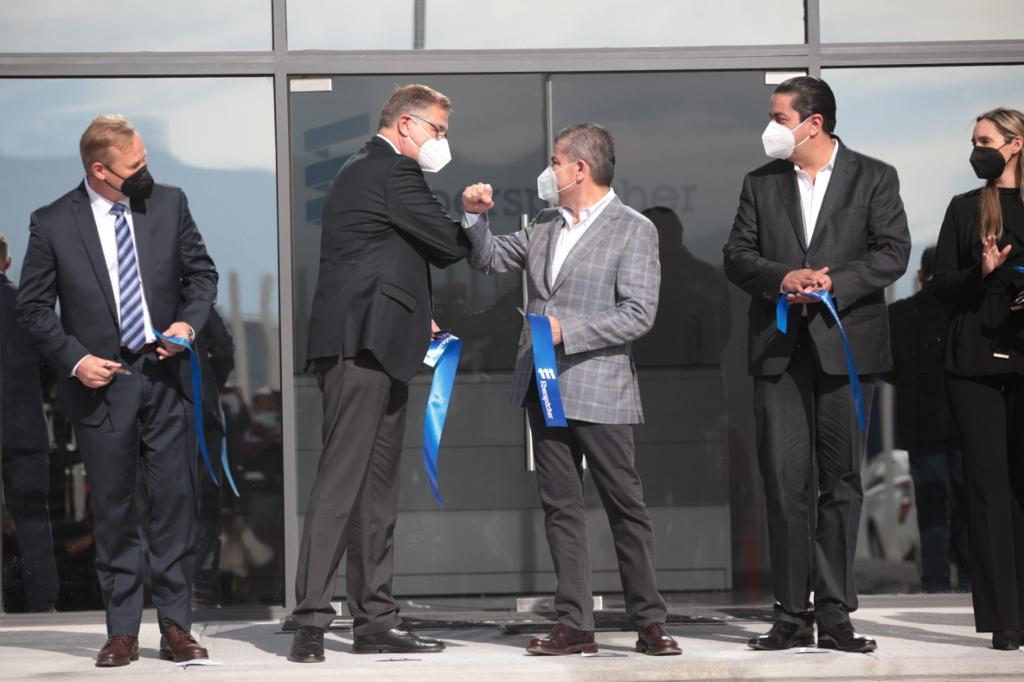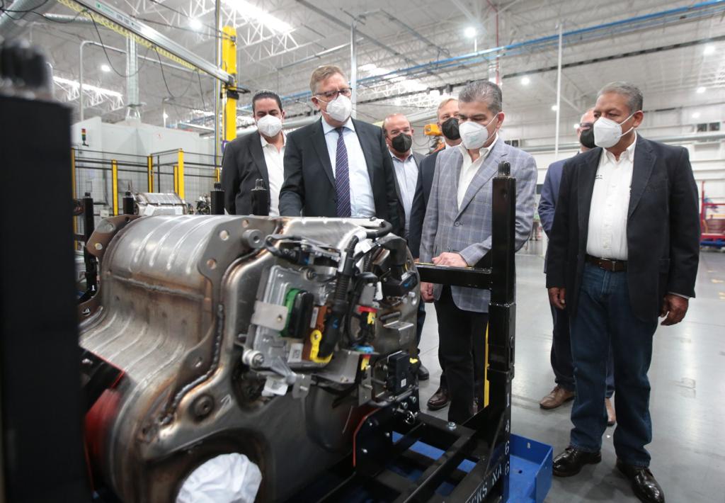 Junto al alcalde José María Morales Padilla; el Secretario de Economía, Jaime Guerra Pérez; directivos de la firma encabezados por el CEO de Tecnología de Sistemas de Escape, Thomas Waldhier, y el líder estatal de la CTM, Tereso Medina Ramírez, inauguró la planta, que generará 500 empleos directos y en la que se invirtieron 25 millones de dólares.
