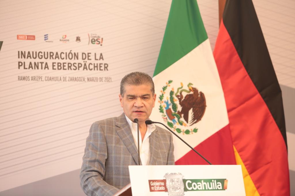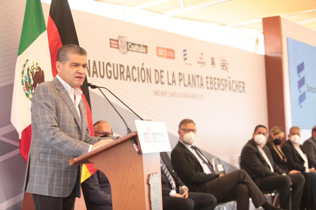 Ramos Arizpe, Coahuila.- Al inaugurar la Planta Eberspächer en esta ciudad, la primera del consorcio en México, el gobernador Miguel Riquelme Solís destacó que en Coahuila los tres Poderes del Estado trabajan unidos para brindar certidumbre y seguridad a inversionistas que deciden instalarse en la entidad.
