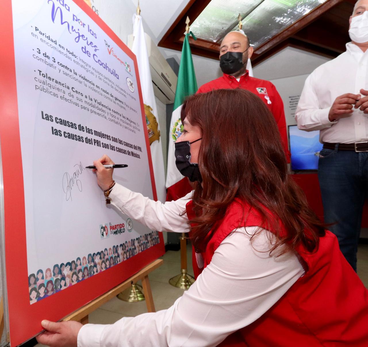 “Al hacer esta firma y estos compromisos nos asegura y nos recuerda que no debe haber un retroceso en lo que hemos logrado”, puntualizó, “sabemos que nuestro partido ha luchado siempre por el avance, progreso y empoderamiento de las mujeres”.