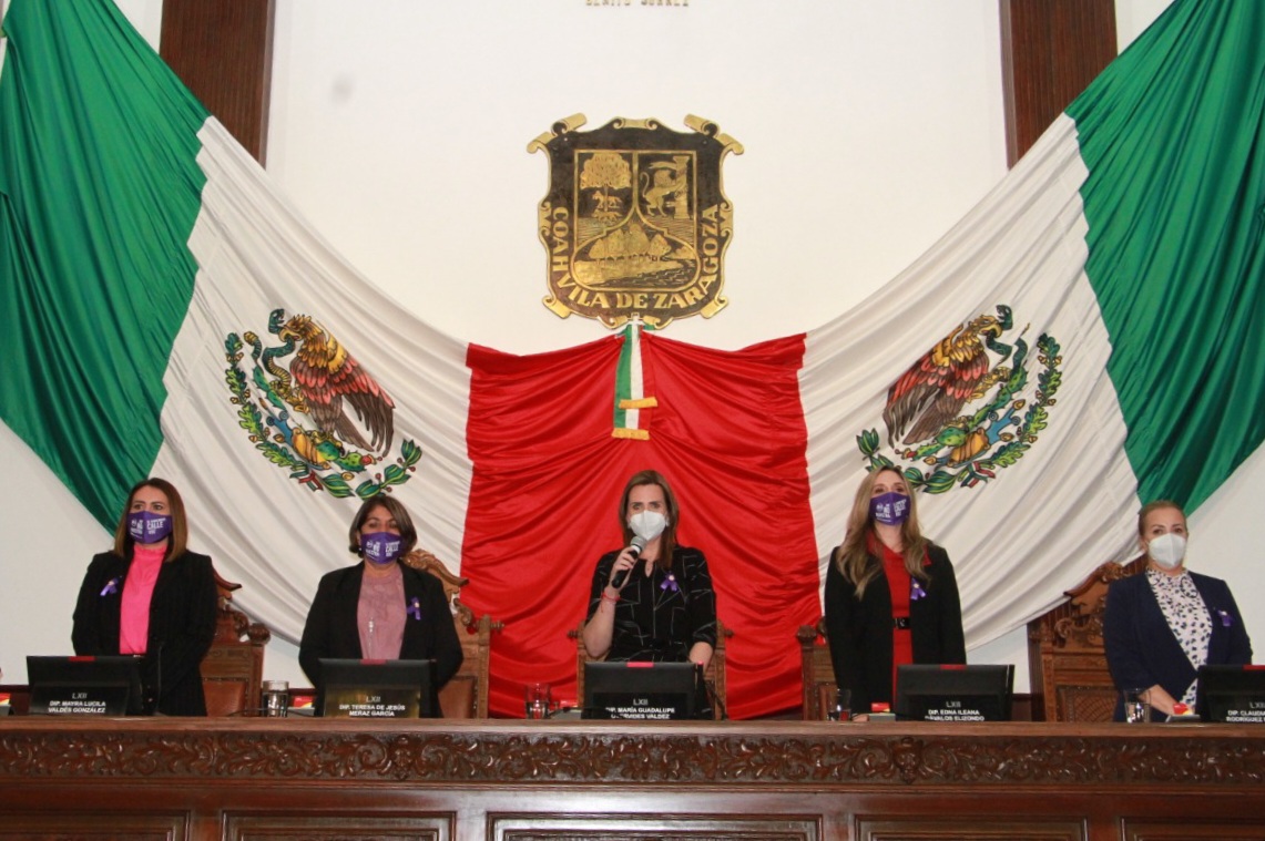 Con motivo del Día Internacional de la Mujer, el Pleno del Congreso del Estado de Coahuila tuvo a bien celebrar una Sesión Solemne presidida por la Mesa Directiva que por primera vez, está conformada solo por mujeres diputadas, y donde una representante de cada fuerza política entregó la agenda legislativa para la igualdad y el acceso a una vida libre de violencia, destacando las siguientes intervenciones:
