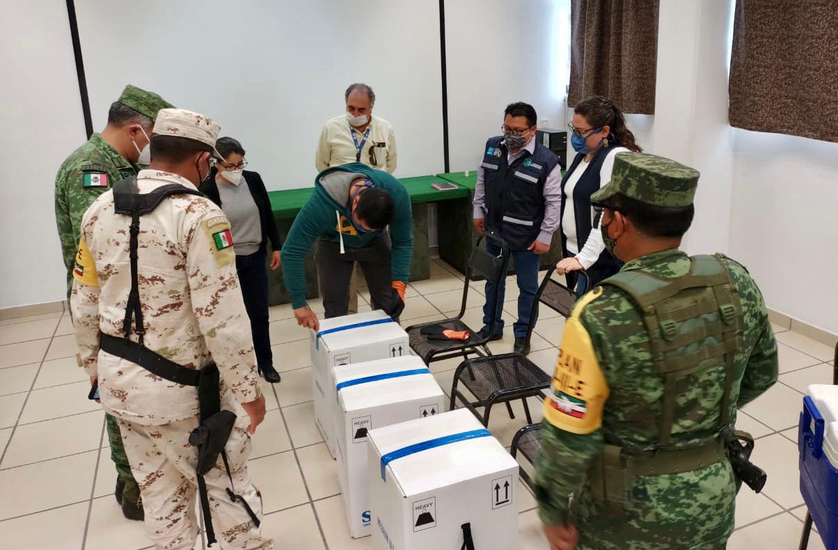 El Secretario de Salud del Estado, Roberto Bernal Gómez, acudió este martes al 69 Batallón de Infantería para recibir un total de 12 mil 675 dosis, que serán destinadas a adultos mayores de los municipios de Piedras Negras y Frontera.