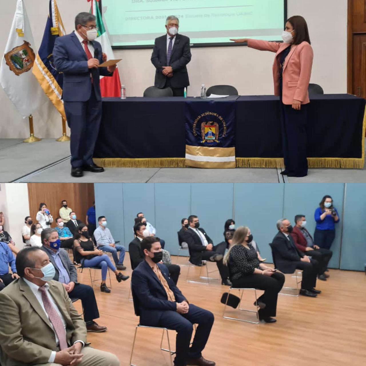 Monclova, Coahuila.- En cumplimiento al artículo 80 del Estatuto Universitario, el rector de la Universidad Autónoma de Coahuila, Salvador Hernández Vélez tomó protesta a la doctora Susana Victoria Sierra Herrera, como nueva directora de la Escuela de Psicología de la Unidad Norte para el periodo 2021-2024.